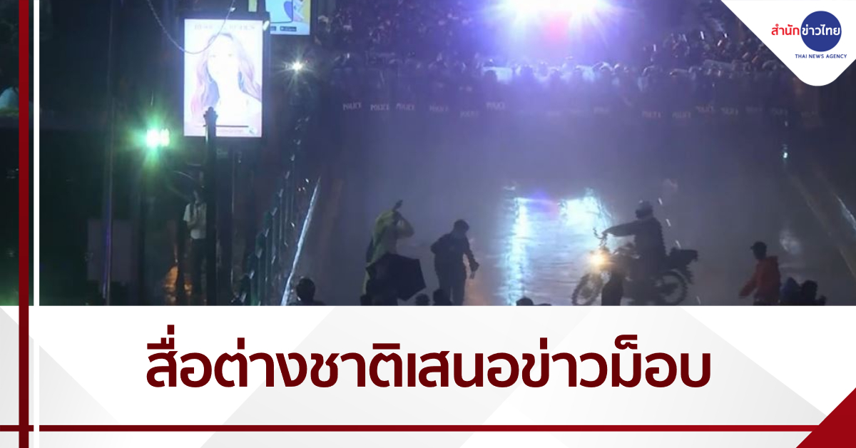 กทม. 17 ต.ค. – สื่อมวลชนต่างชาติติดตามและเสนอข่าวตำรวจปราบจลาจลฉีดน้ำแรงดันสูงสลายการชุมนุมบริเวณสี่แยกปทุมวัน ใจกลางกรุงเทพมหานคร เมื่อคืนที่ผ่านมา ระบุเป็นเหตุการณ์รุนแรงที่สุดในรอบ 3 เดือน นับตั้งแต่มีการชุมนุมเพื่อเรียกร้องให้ “พล.อ.ประยุทธ์” ลาออกจากตำแหน่งนายกรัฐมนตรี