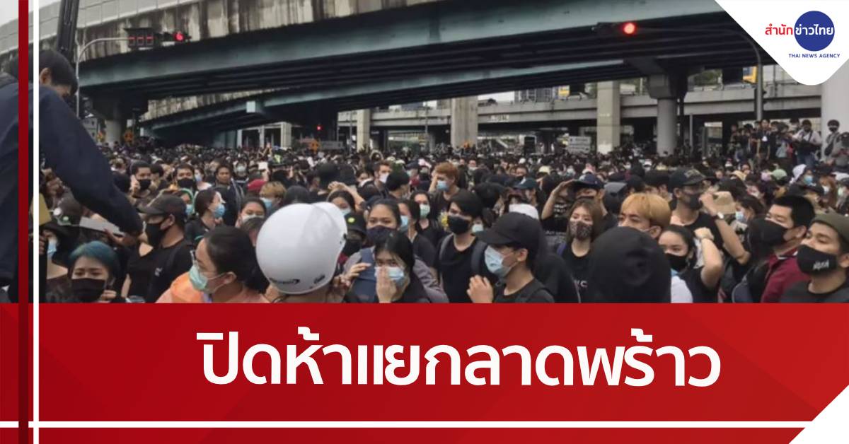 กรุงเทพฯ 17 ต.ค.- ผู้สื่อข่าวรายงานว่า วันนี้ (17 ต.ค.) กลุ่มผู้ชุมนุมได้นัดรวมตัวกันตามสถานีรถไฟฟ้าแบบดาวกระจาย ในเวลา 15.00 น. จุดหนึ่งที่มีผู้ชุมนุมมารวมตัวกัน คือ บริเวณห้างเซ็นทรัล ลาดพร้าว และได้เริ่มเคลื่อนขบวน เวลา 15.40 น. ไปยังบริเวณ 5 แยกลาดพร้าว เวลา 15.50 น. กลุ่มผู้ชุมนุมได้ปิดการจราจรบนถนนพหลโยธิน ฝั่งลาดพร้าว มุ่งหน้าสะพานควาย โดยบริเวณนี้ยังไม่เจ้าหน้าที่ตำรวจมาดูแลความเรียบร้อย