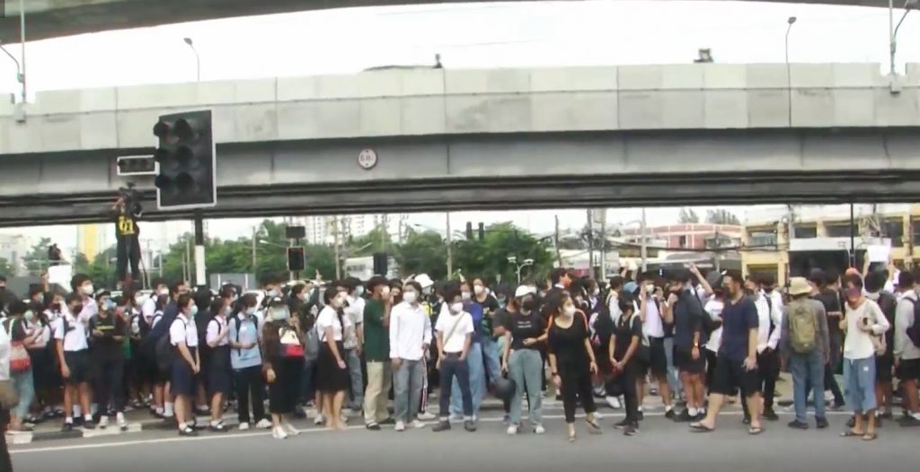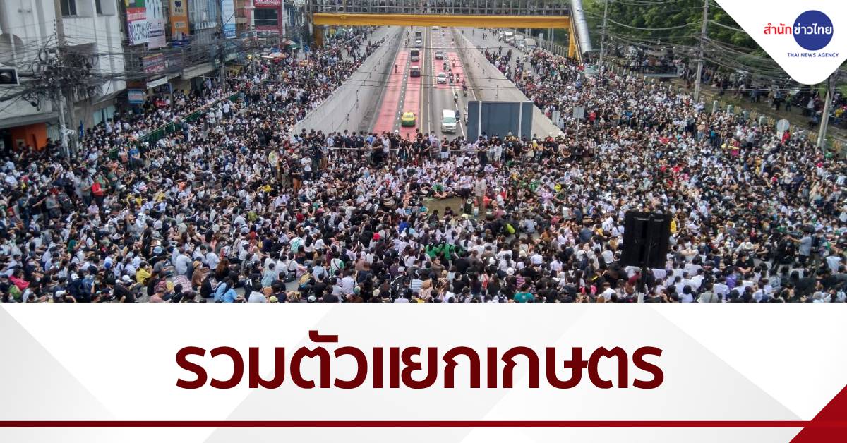 หลังจากเพจเยาวชนปลดแอก และในกลุ่มเทเลแกรม ได้นัดหมายสถานที่ที่จะรวมตัวกันชุมนุม ซึ่งหนึ่งในนั้นคือแยกเกษตร ขณะนี้ได้ปิดทางกลับรถงามวงศ์วาน ซึ่งจุดนี้ มีจ่านิว นำลำโพงขยายเสียงมากล่าวปราศรัย ย้ำจุดยืนข้อเรียกร้องของกลุ่มคณะราษฎร ขณะที่กลุ่มผู้ชุมนุมก็ได้เดินทางมาอย่างต่อเนื่อง บางส่วนก็ได้ยืนสังเกตการณ์ที่ริมฟุตบาท รวมถึงบนสะพานลอย ส่วนการจราจรเริ่มติดขัดโดยมีเจ้าหน้าที่ตำรวจ สน.บางเขน มาคอยอำนวยความสะดวกด้านการจราจร ขณะที่สื่อมวลชนจำนวนมาก เดินทางมาติดตามทำข่าวอย่างใกล้ชิด ส่วนร้านค้าบริเวณใกล้เคียงยังเปิดขายของตามปกติ