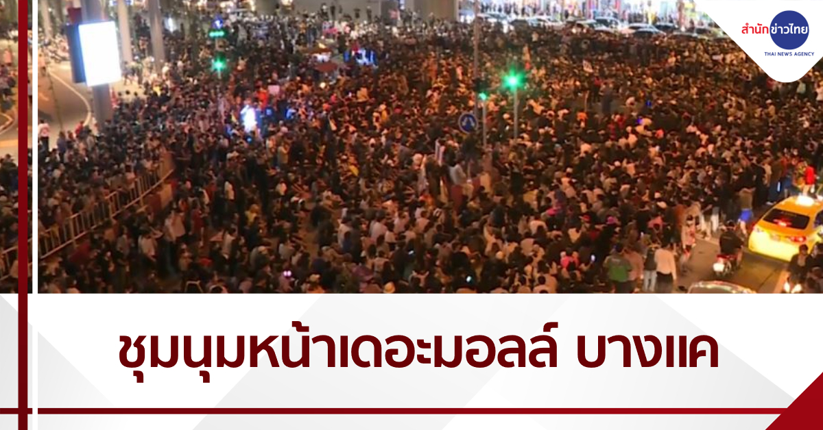 มวลชนบริเวณเดอะมอลล์ บางแค หลังจากเคารพธงชาติได้มีการแสดงออกเชิงสัญลักษณ์ชู 3 นิ้ว จากนั้นได้ลงมาบนแยกถนนกาญจนาภิเษก ตัดถนนเพชรกาญจนา ทำให้มีการปิดการจราจรถนนกาญจนาภิเษก มุ่งหน้าถนนเพชรเกษม ทั้งหมด 5 ช่องทาง และถนนเพชรเกษม มุ่งหน้าบางแค 3 ช่องทาง โดยกลุ่มแนวร่วมคณะราษฎรผลัดกันกล่าวปราศรัยเรียกร้อง 3 ข้อ และมีการจัดกิจกรรมร้องเพลง เปิดไฟจากมือถืออย่างต่อเนื่อง .-สำนักข่าวไทย