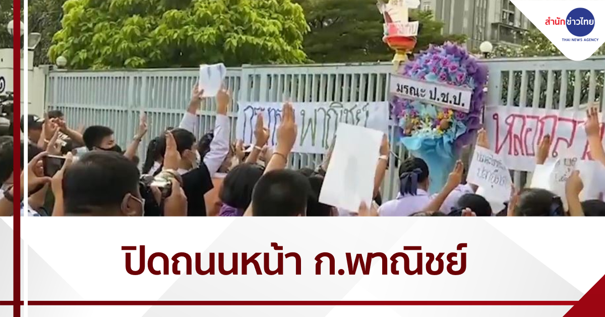 นนทบุรี 21 ต.ค. – กลุ่มเครือข่ายคนรุ่นใหม่นนทบุรี และกลุ่มราษฎร รวมตัวปิดถนนหน้ากระทรวงพาณิชย์ กดดัน “จุรินทร์” ถอนตัวร่วมรัฐบาล พร้อมเรียกร้องให้ “พล.อ.ประยุทธ์” ลาออก แก้ไขรัฐธรรมนูญ และหยุดคุกคามประชาชน