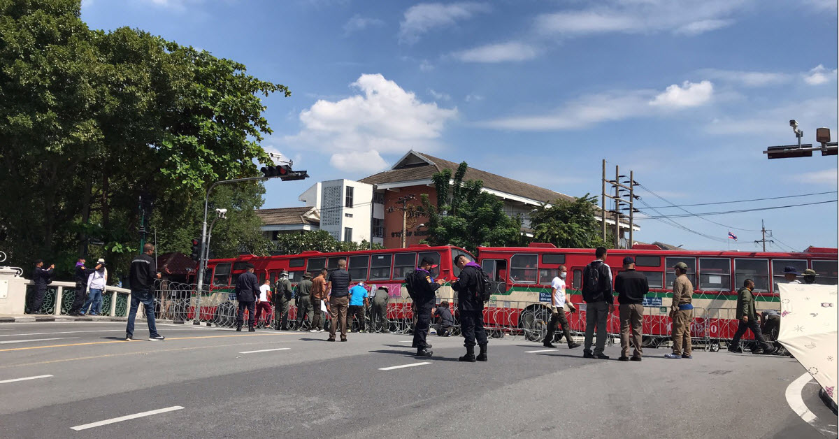 ผู้สื่อข่าวรายงานบรรยากาศการรักษาความปลอดภัย ที่ทำเนียบรัฐบาล วันนี้ (22 ต.ค.) หลังเมื่อวานนี้ (21 ต.ค.) ผู้ชุมนุมกลุ่มคณะราษฎร 63 เดินทางมายื่นคำขาดให้ พล.อ.ประยุทธ์ จันทร์โอชา นายกรัฐมนตรี ลาออกภายใน 3 วัน หากไม่ปฏิบัติตามจะกลับมาชุมนุม และยกระดับมาชุมนุมปักหลักที่ทำเนียบรัฐบาล ว่า ทำเนียบรัฐบาลได้มีการซักซ้อมเสมือนจริงรับมือกลุ่มผู้ชุมนุม ภายใต้การกำกับดูแล พ.ต.อ.อรรถวิทย์ สืบสาย รักษาการผู้บังคับการตำรวจนครบาล 1 และ พล.ต.ท.อัครเดช พิมลศรี ผู้บัญชาการกระจำสำนักงานตำรวจแห่งชาติ ประสานงานทำเนียบรัฐบาล โดยนำความบกพร่องแนวป้องกันมาปรับ เพื่อให้มีความรัดกุมมากยิ่งขึ้น ป้องกันกลุ่มผู้ชุมนุมฝ่าแนวกันมาได้ โดยมีการนำรถโดยสาร ขสมก. มาจอดขวางปิด ถ.พิษณุโลก แบบประชิด ไม่มีช่องว่าง เชิงสะพานสะพานชมัยมรุเชฐ ฝั่งโรงเรียนราชวินิต มัธยม วางรั้วกั้น วางลวดหนาม รถตู้ของตำรวจ ไม่ให้ผู้ชุมนุมสามารถข้ามมาฝั่งด้านหน้าทำเนียบฯ ได้