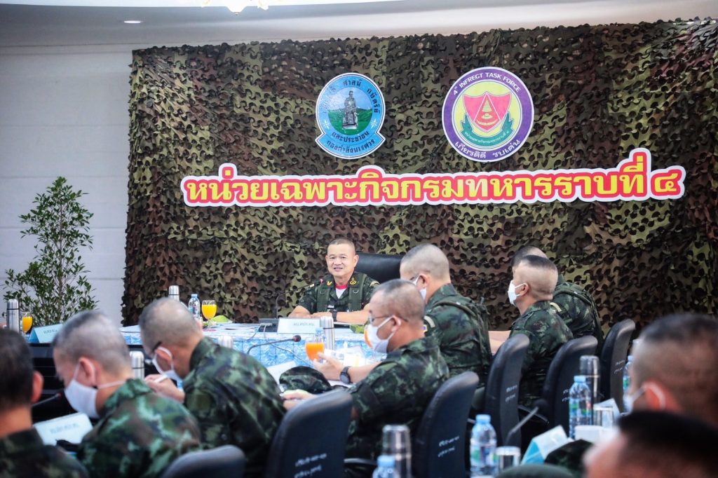 ผู้บัญชาการทหารบกรับฟังบรรยายสรุปของหน่วยเฉพาะกิจกรมทหารราบที่ 4 กองกำลังนเรศวร พร้อมตรวจภูมิประเทศพื้นที่ช่องทางท่าข้ามธรรมชาติที่ 23 บ้านวังแก้ว และเยี่ยมกำลังพลที่ปฏิบัติงาน ณ ฐานปฏิบัติการบ้านวาเล่ย์เหนือ อ.พบพระ โดยเน้นย้ำกำลังพลในพื้นที่ดำรงความต่อเนื่องในภารกิจป้องกันประเทศ แก้ไขปัญหาความมั่นคงในพื้นที่ชายแดน เฝ้าตรวจและสกัดกั้นการกระทำผิดกฎหมาย ควบคู่ไปกับมาตรการป้องกัน COVID-19 โดยเฉพาะดูแลพื้นที่ในความรับผิดชอบของแต่ละหน่วย ไม่ให้ลักลอบเข้าเมืองโดยไม่ผ่านการคัดกรอง