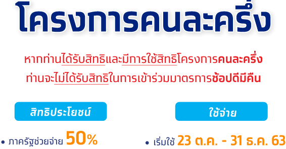 นายอนุชา บูรพชัยศรี โฆษกประจำสำนักนายกรัฐมนตรี เปิดเผยว่า ประชาชนที่ผ่านการลงทะเบียนโครงการคนละครึ่ง สามารถใช้จ่ายได้แล้ว โดยเริ่มวันนี้(23ต.ค.)เป็นวันแรก จนถึงวันที่ 31 ธันวาคม 2563 โดยผู้เข้าโครงการสามารถจ่ายค่าอาหาร เครื่องดื่มและสินค้าทั่วไป ไม่รวมสลากกินแบ่ง เครื่องดื่มแอลกอฮอล์ ยาสูบและบริการต่างๆ ในลักษณะการร่วมจ่าย (Co-pay) ซึ่งปัจจุบันมีผู้ลงทะเบียนแล้วจำนวน 6,733,557 คน ในจำนวนนี้ผ่านขั้นตอนการตรวจสอบ และได้รับสิทธิใช้จ่ายตามโครงการจำนวน 6,402,927 คน ดังนั้น จึงยังคงเหลือสิทธิให้ประชาชนที่สนใจลงทะเบียนเข้าร่วมโครงการได้อีกกว่า 3 ล้านคน