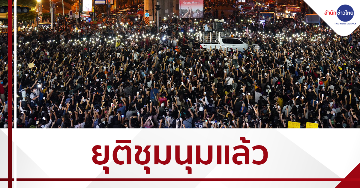 ก่อนที่แกนนำผู้ชุมนุมจะประกาศยุติการชุมนุมพร้อมนัดหมายการชุมนุมในวันพรุ่งนี้ (26 ต.ค.) ที่สี่แยกสามย่าน เวลา 17.00 น.-สำนักข่าวไทย