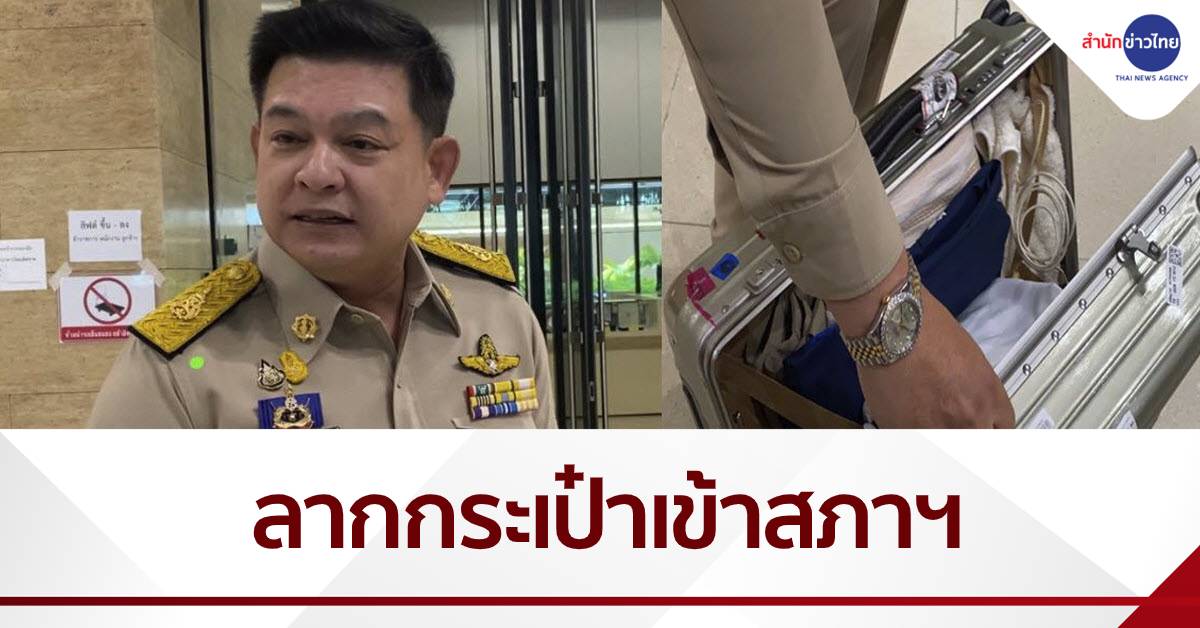 รัฐสภา 26 ต.ค.-“สิระ” ลากกระเป๋าเข้าสภาฯ เตรียมค้าง บอก กลัวม็อบปิดล้อมแล้วออกไม่ได้ เผยได้รับมอบหมายให้อภิปรายเรื่องการขัดขวางขบวนเสด็จ