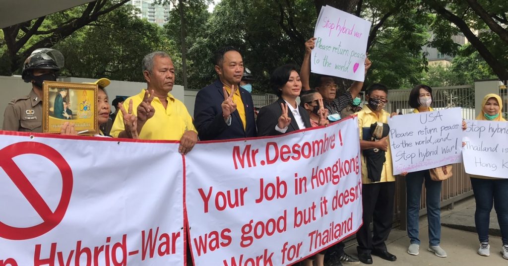 ด้านนายศาสตรา กล่าวว่า ตั้งข้อสังเกตว่า ไมเคิล จอร์จ ดีซอมบรี เอกอัครราชทูตอเมริกาประจำประเทศไทยคนปัจจุบัน เพิ่งย้ายมาจากฮ่องกง จึงเกรงว่า จะใช้แนวทางการปลุกระดมเดียวกับผู้ชุมนุมที่ฮ่องกง ทั้งนี้ ทั่วโลกทราบดีว่า กระบวนการใส่ร้ายป้ายสีสถาบัน การสร้างภาพล้อเลียนต่าง ๆ ทั่วโลกรู้ว่ารัฐบาลใดเป็นผู้อยู่เบื้องหลัง โดยเฉพาะองค์กรสิทธิมนุษยชนต่าง ๆ ที่ได้รับการสนับสนุนจากรัฐบาลของอเมริกา วันนี้ จึงมาขอความเห็นใจสหรัฐอเมริกาเพื่อให้หยุดสงครามนี้ เพราะประเทศไทยเป็นประเทศที่รักสันติ หยุดใช้การทำลายสถาบัน การยั่วยุ และการทำให้นักศึกษาฉีกพระบรมฉายาลักษณ์ สร้างความเจ็บปวดให้กับคนไทยในช่วงสถานการณ์ที่ทั้งสหรัฐฯ และจีน ต้องการมิตรประเทศ ซึ่งถือว่า ไม่เป็นผลดีกับสหรัฐอเมริกาเลย มีแต่จะทำให้สหรัฐฯ เสียมิตรที่มีมาอย่างยาวนานอย่างประเทศไทย .-สำนักข่าวไทย