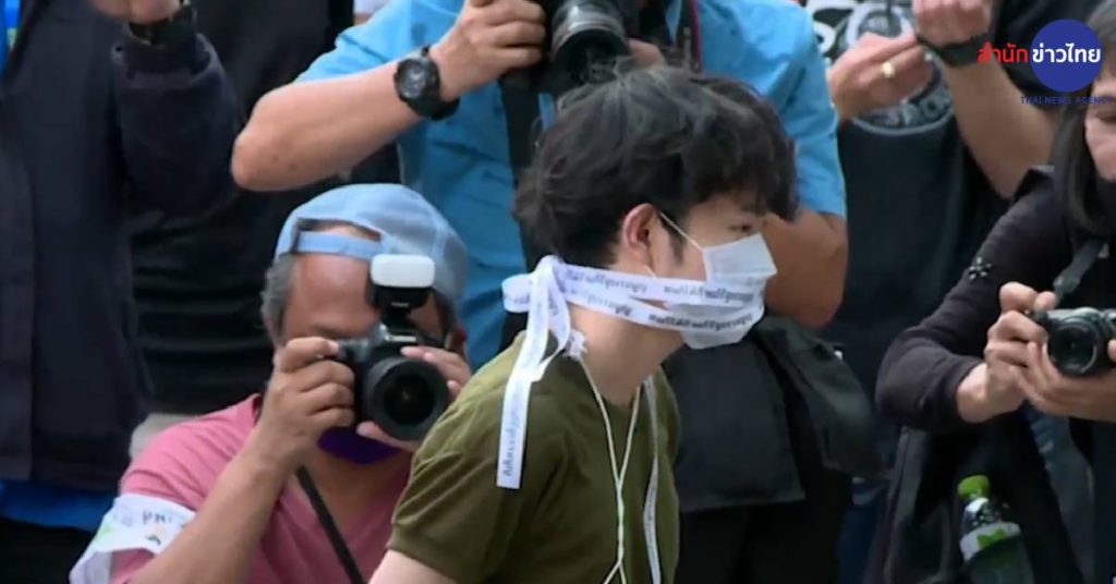 ซึ่งกลุ่มผู้ชุมนุม ได้แสดงออกเชิงสัญลักษณ์ ด้วยการนำริบบิ้นขาวมาปิดปาก และผูกที่ข้อมือ ไขว้หลัง เพื่อสื่อว่า ในวันที่ 16 ตุลาคม มีสื่อมวลชนที่ถูกจับกุมเช่นเดียวกับผู้ชุมนุม รวมถึงเมื่อเวลา 18.00 น. กลุ่มมวลชน ยังแสดงออกด้วยการนั่งเคารพธงชาติด้วย