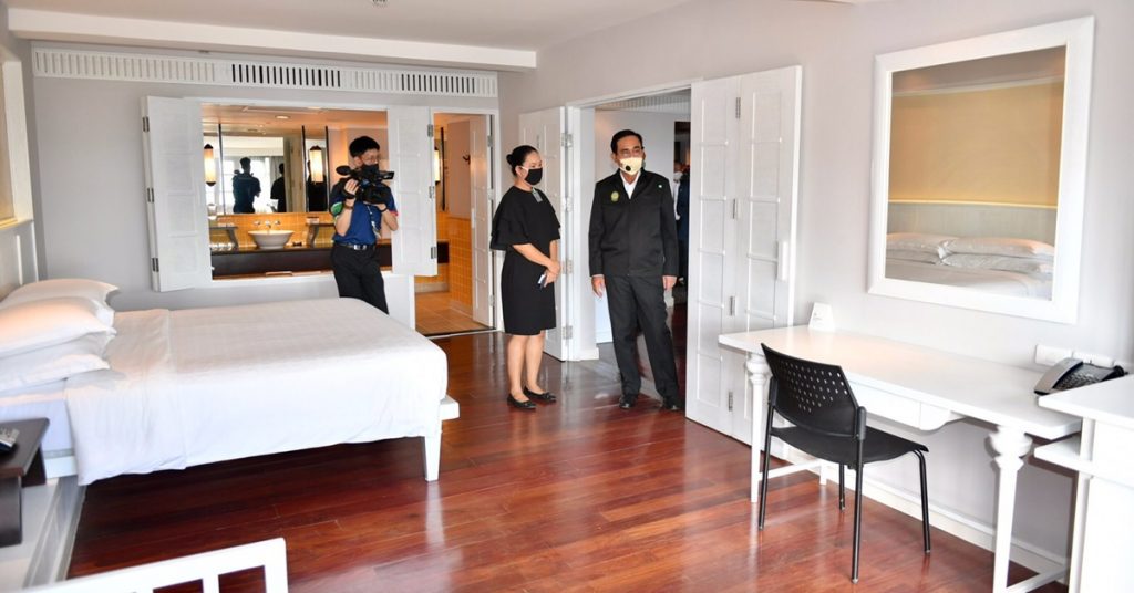 นายกรัฐมนตรี ได้สอบถามถึงกระบวนการต่าง ๆ ในการคัดกรองนักท่องเที่ยวด้วยความสนใจ และขอให้เตรียมความพร้อมหากมีนักท่องเที่ยวเดินทางเข้ามามากขึ้น ก่อนเดินทางไปตรวจเยี่ยมการบริหารจัดการของโรงแรมเพื่อรองรับนักท่องเที่ยวในระบบ Alternative Local State Quarantine (ALSQ) ที่โรงแรมเชอราตัน สมุย รีสอร์ท ตำบลบ่อผุด อำเภอเกาะสมุย พร้อมเยี่ยมชมห้องตัวอย่างในระบบ ALSQ ด้วย ทั้งนี้ เมื่อนักท่องเที่ยวอยู่ใน ALSQ ครบตามกำหนด 14 วัน หากไม่พบเชื้อก็สามารถเดินทางไปท่องเที่ยวในสถานที่ต่าง ๆ ของเกาะสมุยได้ โดยจะมีการมอบหนังสือรับรองการเข้าพักใน ALSQ และกำไลข้อมือ (Wristband) เพื่อติดตามการเดินทางท่องเที่ยวในอำเภอเกาะสมุย และนักท่องเที่ยวจะต้องอยู่ในอำเภอเกาะสมุย อย่างน้อย 7 วัน โดยจะมีการติดตามผ่าน QR Code Samui Health Pass ในทุก ๆ วัน แต่หากพบเชื้อก็มีกระบวนการด้านสาธารณสุขที่ได้มาตรฐานรองรับในการส่งตัวเพื่อรับการรักษาต่อไป