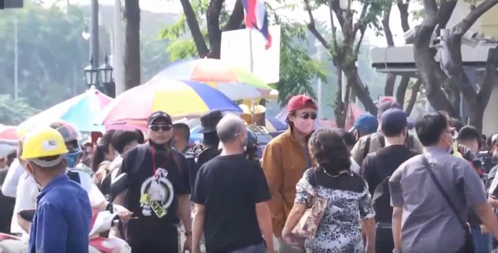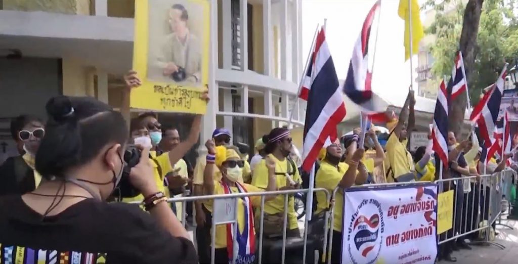 ขณะที่กลุ่มผู้ชุมนุมศูนย์รวมประชาชนปกป้องสถาบันพระมหากษัตริย์ หรือ ศปปส. ปักหลักชุมนุมที่อนุสาวรีย์ประชาธิปไตย ฝั่งร้านเมธาวลัยศรแดง