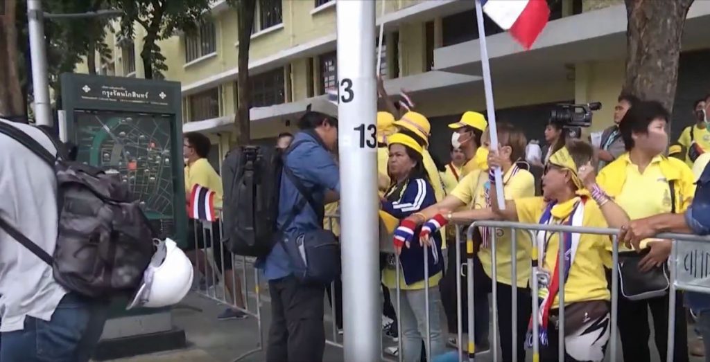 ขณะที่กลุ่มผู้ชุมนุมศูนย์รวมประชาชนปกป้องสถาบันพระมหากษัตริย์ หรือ ศปปส. ปักหลักชุมนุมที่อนุสาวรีย์ประชาธิปไตย ฝั่งร้านเมธาวลัยศรแดง โดยไม่ได้กระทบกระทั่งใดๆ ของกลุ่มมวลชนทั้งสองกลุ่ม