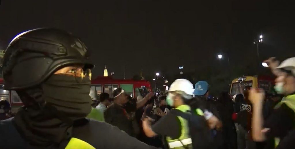18.39 น. บริเวณหน้าศาลฎีกา ตำรวจประกาศขอผู้ชุมนุมอย่าเข้าใกล้พระบรมมหาราชวังในรัศมี 150 เมตร แต่ผู้ชุุมนุมฝ่าเข้ามาได้ หลังจากนั้นไม่นานตำรวจก็ฉีดน้ำเข้ามา จากนั้นตำรวจได้หยุดฉีด ผู้ชุมนุมที่อยู่ในอารมณ์โกรธ ได้ขว้างสิ่งของเข้าใส่ตำรวจ ต่อมาตำรวจออกมาขอโทษ กรณีฉีดน้ำใส่ ระบุจะไม่ฉีดน้ำแล้ว จากนั้นแกนนำได้เข้าเจรจากับตำรวจ