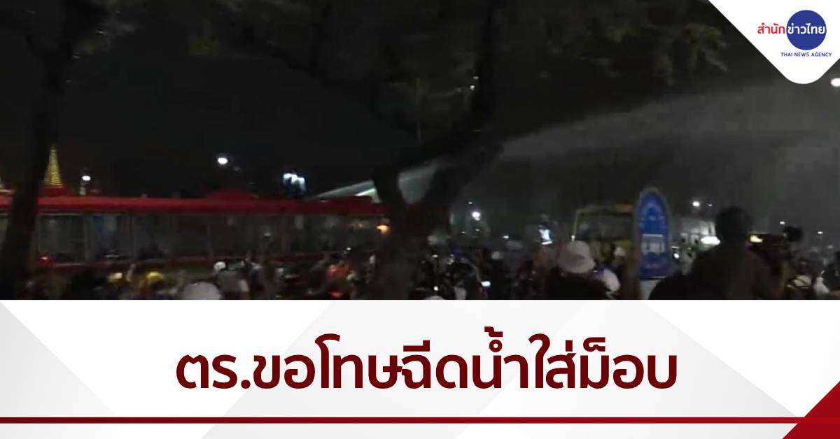 กทม. 8 พ.ย.-ตำรวจขอโทษ กรณีฉีดน้ำใส่ผู้ชุมนุม ยันจะไม่ฉีดน้ำแล้ว ย้ำห้ามเข้าใกล้พระบรมมหาราชวังในรัศมี 150 เมตร ขณะนี้ตำรวจอยู่ระหว่างเจรจากับผู้ชุมนุม