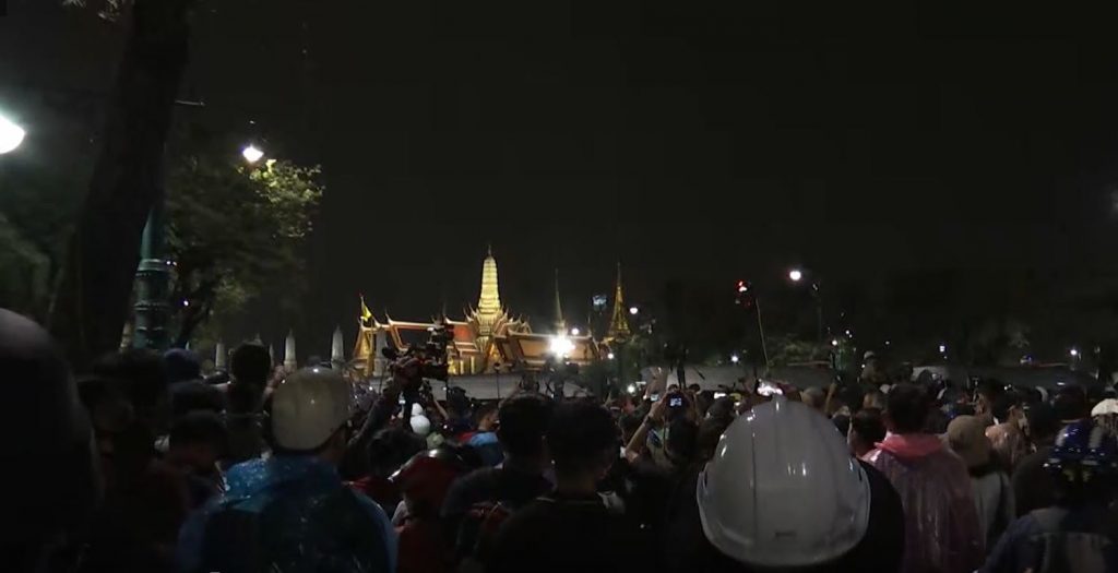 19.50 น. ผู้ชุมนุมผลักดันรถเมล์ที่เจ้าหน้าที่ทำเป็นแนวกั้นออกไป และข้ามฝั่งมาได้ รื้อโซ่และรั้วเหล็กกั้น มาเผชิญหน้ากับแนวเจ้าหน้าที่ เจ้าหน้าที่ถอยร่นจนถึงบริเวณหน้าศาลหลักเมือง กลุ่มมวลชนนำตู้ไปรษณีย์ 4 ตู้ ที่ดัดแปลงมาจากถังขยะ ลำเลียงมาไว้ระหว่างแนวกั้นเจ้าหน้าที่กับผู้ชุมนุม