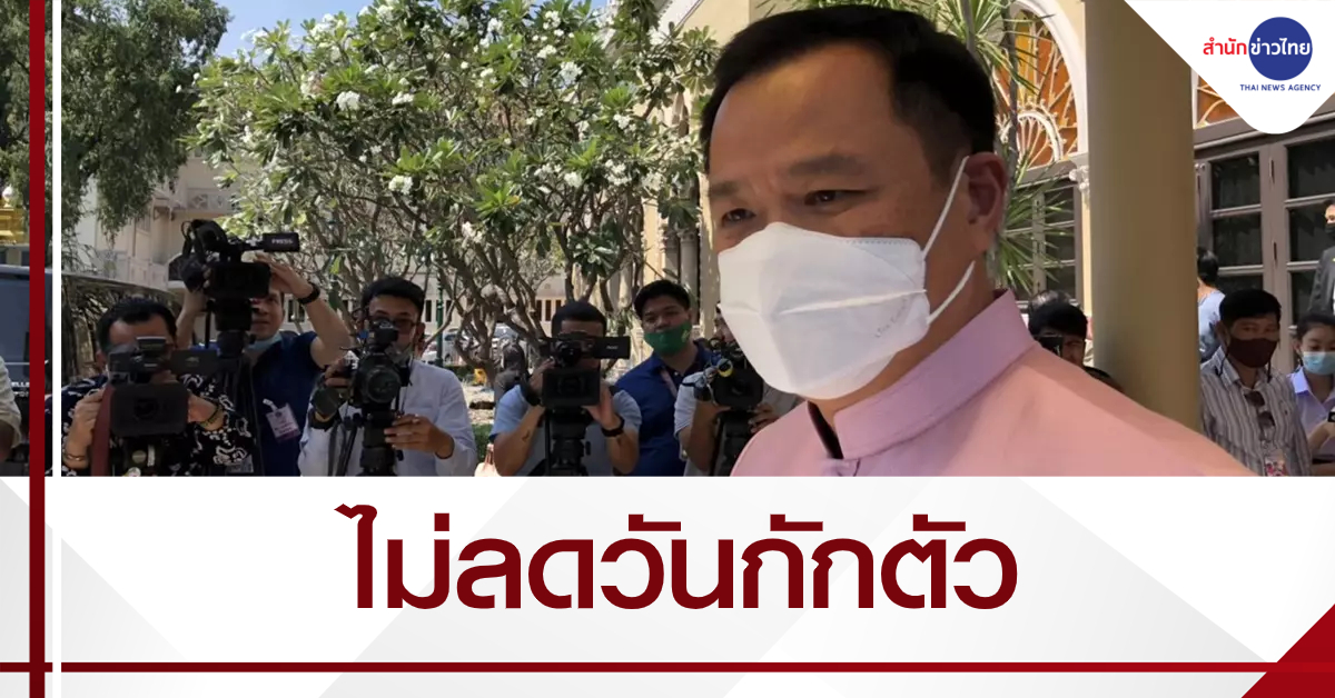 ทำเนียบฯ 10 พ.ย.- “อนุทิน” ยันไม่ลดวันกักตัว หลังพบผู้ติดเชื้อโควิด-19 เดินทางเข้าประเทศทุกเที่ยวบิน หวังให้ประชาชนในประเทศสบายใจ หารือเลขาธิการ สมช. คุมการเข้ามาของนักท่องเที่ยว