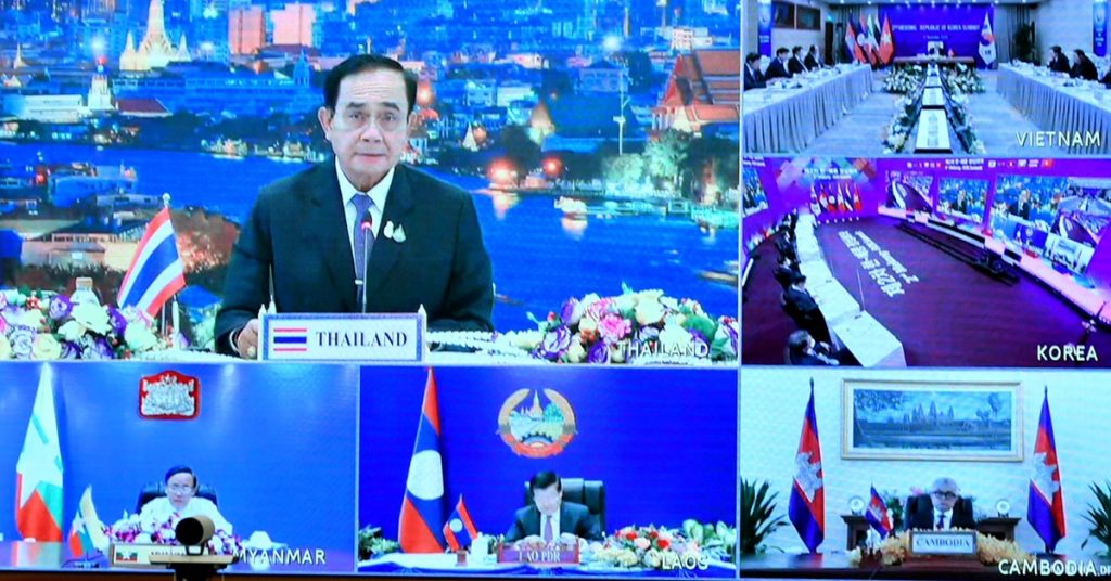 พล.อ.ประยุทธ์ จันทร์โอชา นายกรัฐมนตรีและรัฐมนตรีว่าการกระทรวงกลาโหม เข้าร่วมการประชุมผู้นำกรอบความร่วมมือลุ่มน้ำโขงกับสาธารณรัฐเกาหลี ครั้งที่ 2 ผ่านระบบการประชุมทางไกล โดยมีผู้นำประเทศสมาชิกอาเซียนจาก เวียดนาม กัมพูชา ลาว เมียนมา ไทย และนายมุน แช-อิน ประธานาธิบดีสาธารณรัฐเกาหลี เข้าร่วม