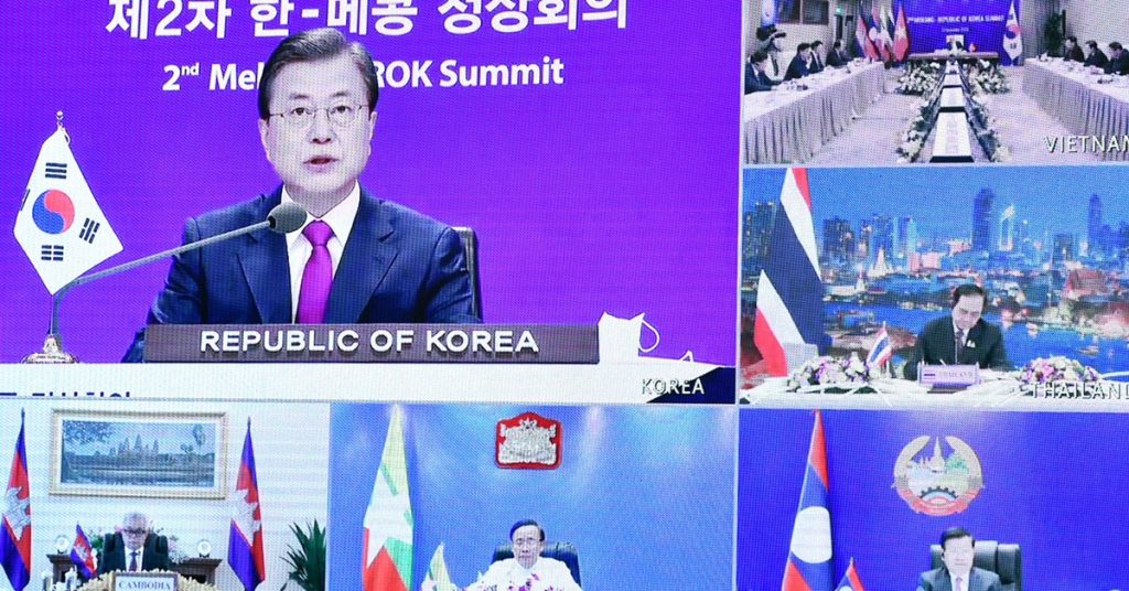 ด้านประธานาธิบดีสาธารณรัฐเกาหลี กล่าวถึงการประชุมที่ปูซาน ซึ่งมีการสานต่อในเรื่องต่างๆ ให้มีความก้าวหน้า การรับรองปฏิญญาแม่โขง-แม่น้ำฮัน เป็นแนวทางการดำเนินการความร่วมมือในด้านต่าง ๆ รวมทั้งความร่วมมือด้านสาธารณสุข การส่งเสริมการค้าระหว่างกัน ความเชื่อมโยง รวมทั้งการรับมือกับโควิด-19 เกาหลีจะบริจาคเงิน 10 ล้านดอลลาร์สหรัฐ เพื่อพัฒนาวัคซีน และส่งเสริมการเดินทางข้ามแดนอย่างปลอดภัย พร้อมกันนี้ ได้ชื่นชมความร่วมมือลุ่มน้ำโขงกับสาธารณรัฐเกาหลี ที่มีความเป็นหุ้นส่วนทางยุทธศาสตร์ มีความไว้เนื้อเชื่อใจสูง มีมิตรภาพที่ดีต่อกัน มีความร่วมมือที่มีประชาชนเป็นศูนย์กลาง ผ่านความร่วมมือด้านการศึกษาและอบรมด้านต่าง ๆ เช่น อาชีวะ การสาธารณสุข รวมทั้งความสามารถด้านภาษา ในปี 2021 จะเป็นจุดเริ่มต้นใหม่ของความสัมพันธ์ของประเทศลุ่มน้ำโขง-สาธารณรัฐเกาหลี ส่งผลให้เกิดความร่วมมือใหม่ ๆ รวมทั้งการเชื่อมโยงในมิติต่าง ๆ การเพิ่มผลผลิตทางการเกษตร สนับสนุนตามความต้องการของภูมิภาค การสนับสนุน SMEs และธุรกิจขนาดเล็ก ซึ่งจะเป็นหุ้นส่วนการพัฒนาที่ยั่งยืน รวมไปถึงการบริหารจัดการน้ำ ตลอดจนการขับเคลื่อนเศรษฐกิจระดับชุมชนให้เดินไปด้วยกันได้