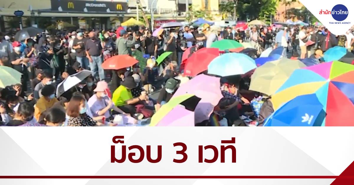 โดยเวทีแรกอยู่ที่แยกคอกวัว เป็นของกลุ่มฟื้นฟูประชาธิปไตย เวทีที่ 2 อยู่ด้านหน้าแมคโดนัลด์ของกลุ่มผู้หญิงปลดแอก และเวทีที่ 3 ของกลุ่มนักเรียนเลวตั้งอยู่บริเวณหน้าร้าน Bangkok Coffee โดยทั้ง 3 เวทีมีกิจกรรมเปิดเวทีปราศรัยเรียกร้องให้พลเอกประยุทธ์ จันทร์โอชา นายกรัฐมนตรี รวมถึง ส.ว. 250 คน ลาออกจากตำแหน่งและแก้ไขรัฐธรรมนูญ รวมถึงปฏิรูปสถาบันพระมหากษัตริย์ มีการเขียนข้อความ ข้อเรียกร้องลงในผ้าดิบ กว้าง 30 เมตร ซึ่งส่วนใหญ่ข้อความเป็นเรื่องขอให้รัฐสภาแก้ไขรัฐธรรมนูญ ก่อนนำขึ้นไปติดตั้ง รอบฐานพานอนุสาวรีย์ รัฐธรรมนูญ