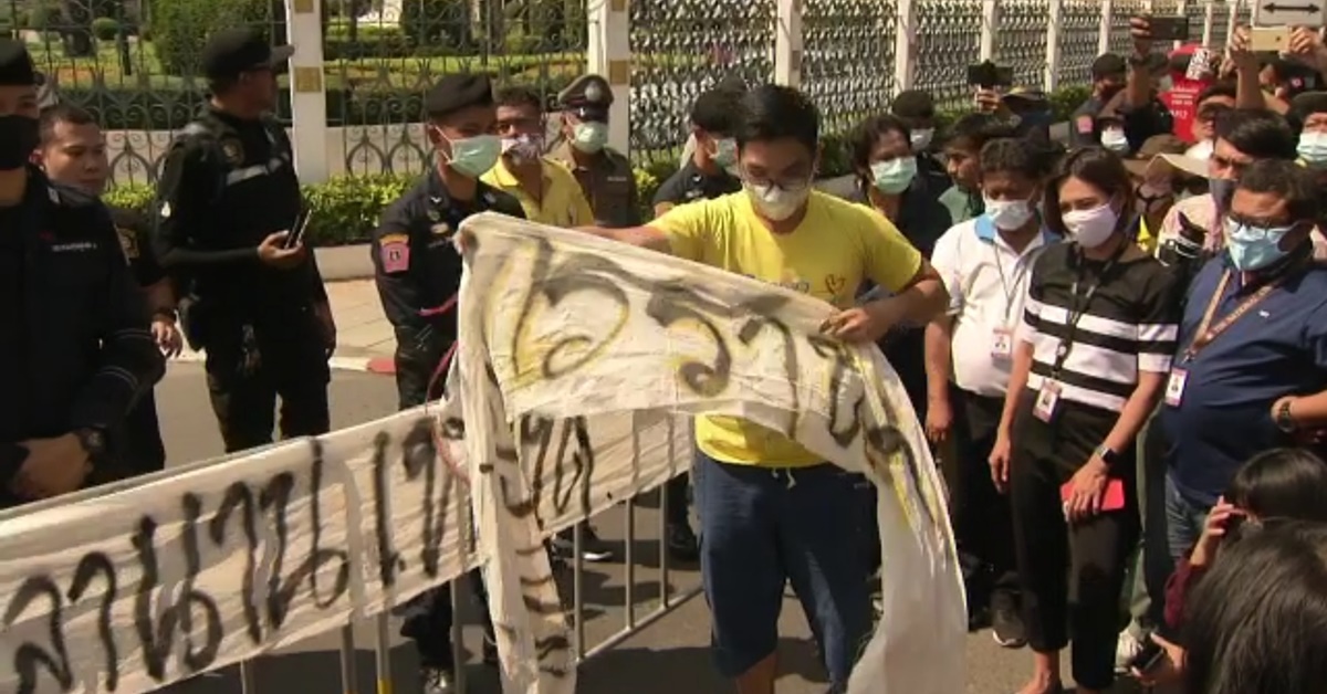 ทำเนียบฯ 16 พ.ย.-พรรควิฬาร์ผูกป้ายผ้าไล่นายกฯ ย้ำนายกรัฐมนตรีเข้ามาอย่างไม่ชอบธรรม ทำเศรษฐกิจพัง