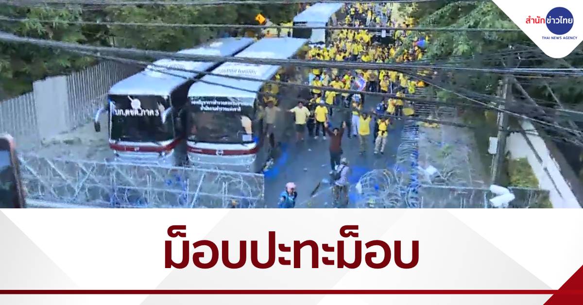กรุงเทพฯ 17 พ.ย.-เกิดเหตุปะทะระหว่างผู้ชุมนุมกลุ่มราษฎร และกลุ่มเสื้อเหลือง บริเวณแยกเกียกกาย มีการขว้างปาข้าวของใส่กัน และผู้ชุมนุมบางส่วนบาดเจ็บ ศีรษะแตก ขณะที่กลุ่มราษฎรฝ่าแนวกั้นของตำรวจควบคุมฝูงชนได้แล้ว หลังจากรถแรงดันน้ำของตำรวจฉีดน้ำไปจนหมด.-สำนักข่าวไทย