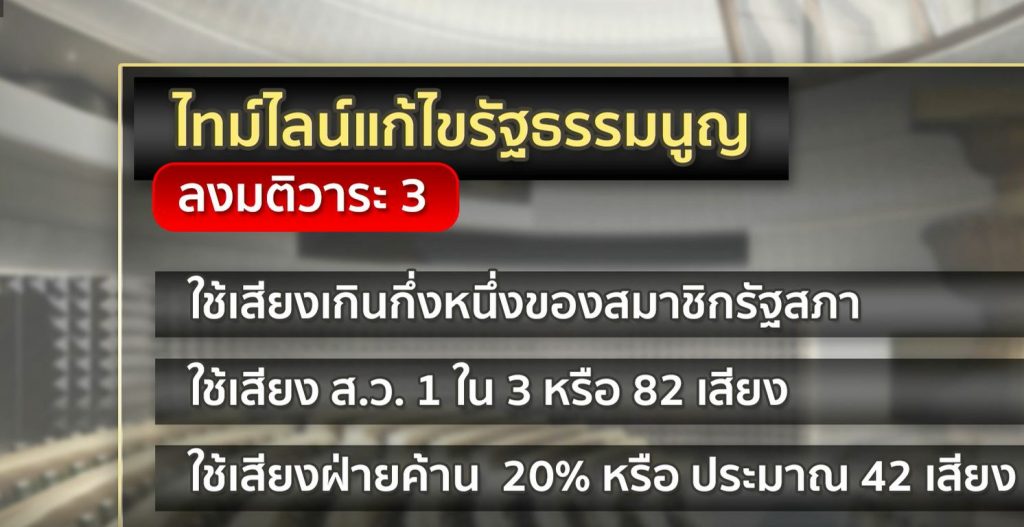 ที่ประชุมรัฐสภารับหลักการวาระแรกของร่างแก้ไขรัฐธรรมนูญ 2 ฉบับ คือญัตติที่ฝ่ายค้านและรัฐบาลเป็นผู้เสนอซึ่งทั้ง 2 ฉบับได้เสียงเกินกึ่งหนึ่ง และ มีส.ว.ลงมติรับหลักการ 1 ใน 3 ของจำนวน ส.ว ส่วนอีก 5 ญัตติที่มีการเสนอรวมถึงร่างของไอลอว์ถูกตีตกไป