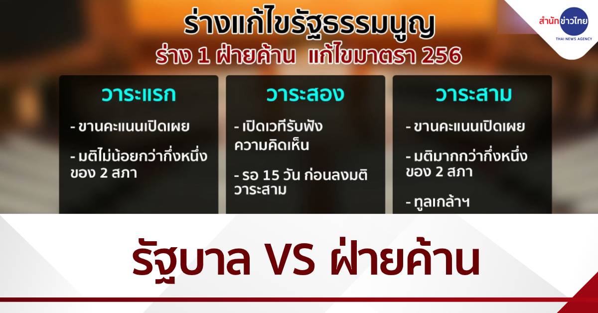 ซึ่งทั้ง 2 ร่างมีจุดเริ่มต้น ในการแก้มาตรา 256 เหมือนกันรายละเอียดของร่างแก้ไขรัฐธรรมนูญที่รัฐสภารับหลักการ คือร่างที่ 1 เป็นร่างที่เสนอโดย ฝ่ายค้าน ให้แก้ไขมาตรา 256 เพื่อเปิดทางให้ตั้งสภาร่างรัฐธรรมนูญ หรือ ส.ส.ร.ขึ้นมายกร่างรัฐธรรมนูญใหม่ ที่มาจากเลือกตั้งทางตรงทั้งหมด 200 คนและให้ดำเนินการร่างรัฐธรรมนูญ ภายใน 120 วัน
