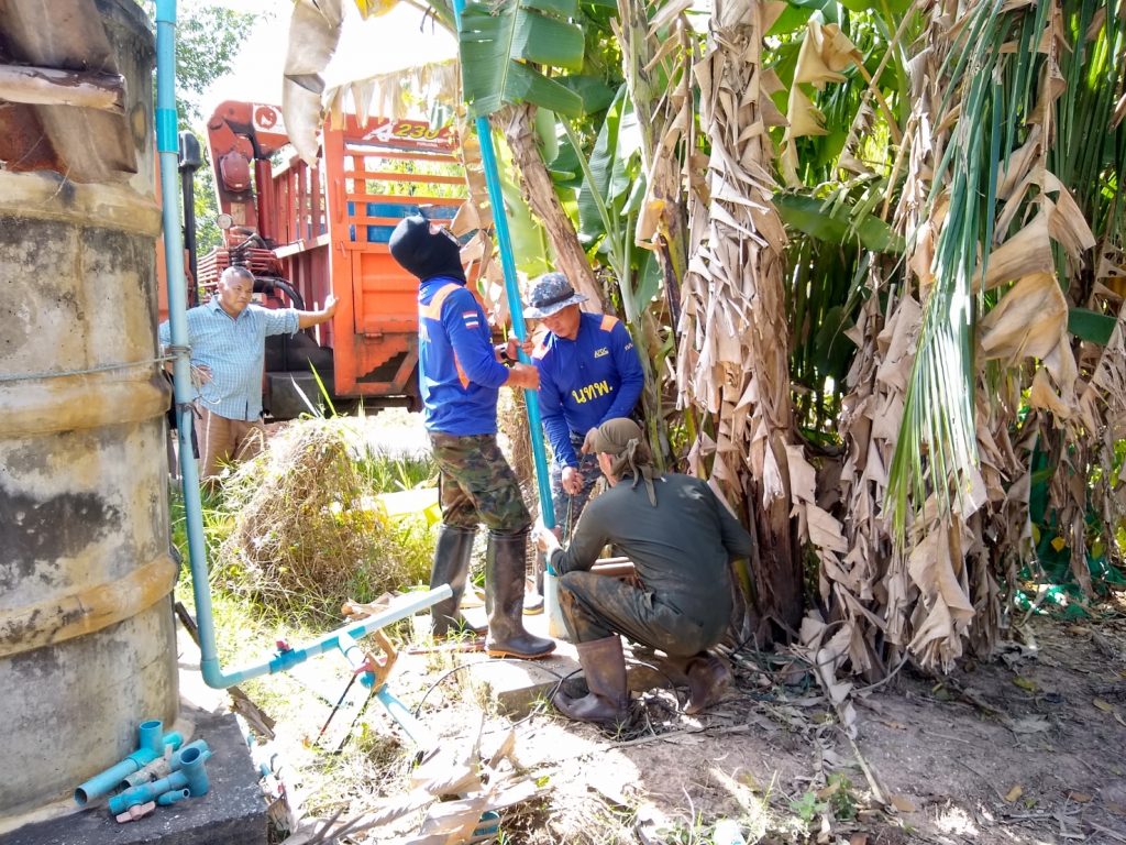 เมื่อวันที่ 21 พฤศจิกายน ที่ จ.สุรินทร์ จากกรณีนโยบาย พล.อ.เฉลิมพล ศรีสวัสดิ์ ผู้บัญชาการทหารสูงสุด (ผบ.ทสส.) มีความห่วงใยประชาชนที่ได้รับความเดือดร้อนจากปัญหาภัยแล้ง จึงให้กองบัญชาการกองทัพไทย (บก.ทท.) โดยหน่วยบัญชาการทหารพัฒนา (ผบ.นทพ.) เข้าช่วยเหลือประชาชน โดย พล.ต.นำพล คงพันธ์ ผอ.สำนักพัฒนาภาค 5 (สนภ.5) นทพ.จัดชุดพัฒนาบ่อน้ำบาดาล ช.พัฒนา สนภ.5 นทพ ดังนี้ 1.กำลังพล 4 นาย 2.ยุทโธปกรณ์ นำรถยนต์บรรทุกสัมภาระเครน บรรทุกเครื่องอัดลม จำนวน 1 คัน รถยนต์บรรทุกสัมภาระติดตั้งปั่นจั่น จำนวน 1 คัน รถยนต์บรรทุกขนาดเล็ก 3/4 ตัน จำนวน 1 คัน ดำเนินการพัฒนาบ่อน้ำบาดาล บ.ไทยสันติสุข ต.บักได อ.พนมดงรัก ปริมาณน้ำ 9 ลบ.ม./ชม. ที่มีประชาชน 170 ครัวเรือน 630 คน และ บ.วารี ต.จีกแดก อ.พนมดงรัก มี 231 ครัวเรือน ประชากร 1,030 คน ให้ได้รับประโยชน์