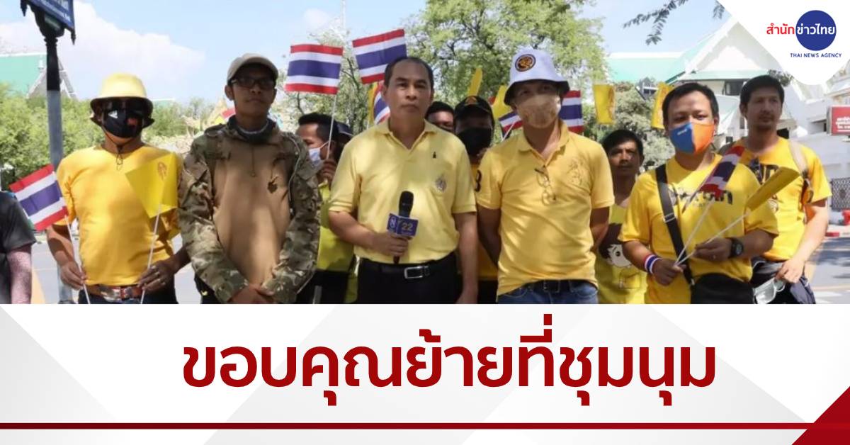 กรุงเทพฯ 25 พ.ย.- กลุ่มพลังแผ่นดินสยามขอบคุณคณะราษฎร 63 ย้ายที่ชุมนุมจากสำนักงานทรัพย์สินฯ ไปยัง เอสซีบีปาร์ค แต่ยังปักหลักบริเวณถนนราชดำเนิน เฝ้าระวังจนถึงที่สุด
