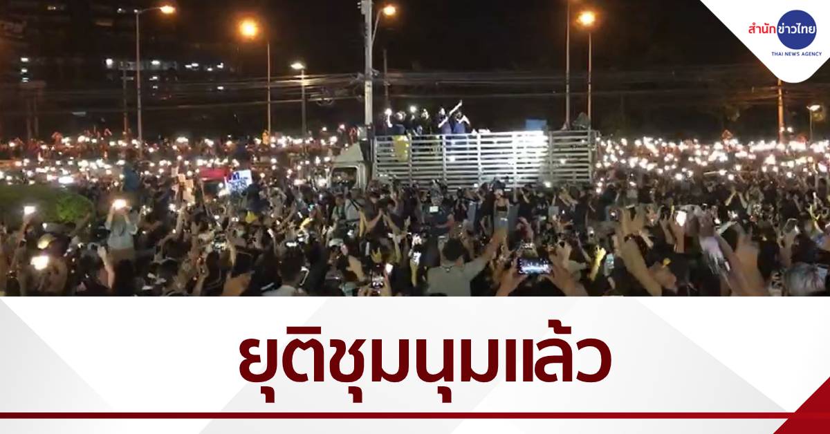 กทม. 25 พ.ย.-แกนนำม็อบราษฎรประกาศยุติการชุมนุม นัดหมายใหม่วันที่ 27 พ.ย. แต่ยังไม่บอกสถานที่ ให้ติดตามในเพจของทางกลุ่ม ลั่นเป็นการยกระดับต่อสู้อีกขั้น