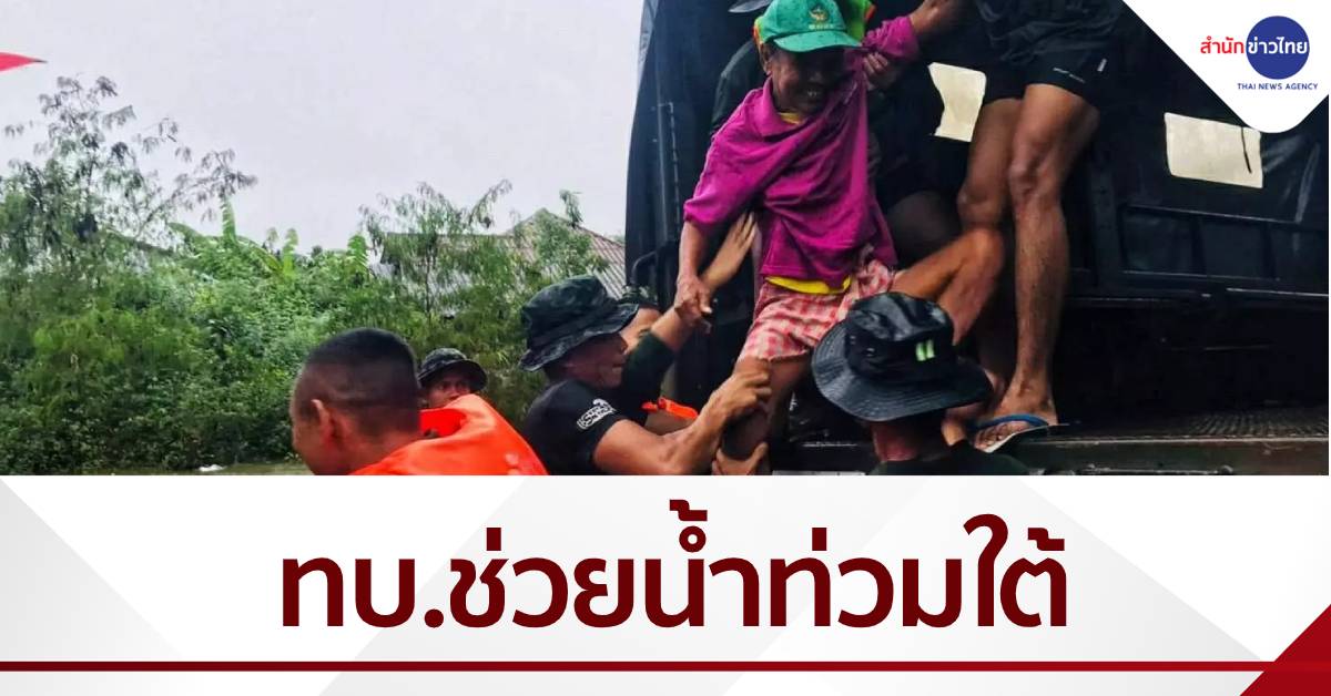 กองบัญชาการกองทัพบก 3 ธ.ค.-ทบ.ส่งทหารช่วยน้ำท่วมใต้หลายจังหวัด เร่งย้ายคน-สิ่งของ ตั้งศูนย์อพยพชั่วคราว ตั้งครัวสนาม ขณะปริมาณน้ำเพิ่มสูงขึ้นต่อเนื่อง