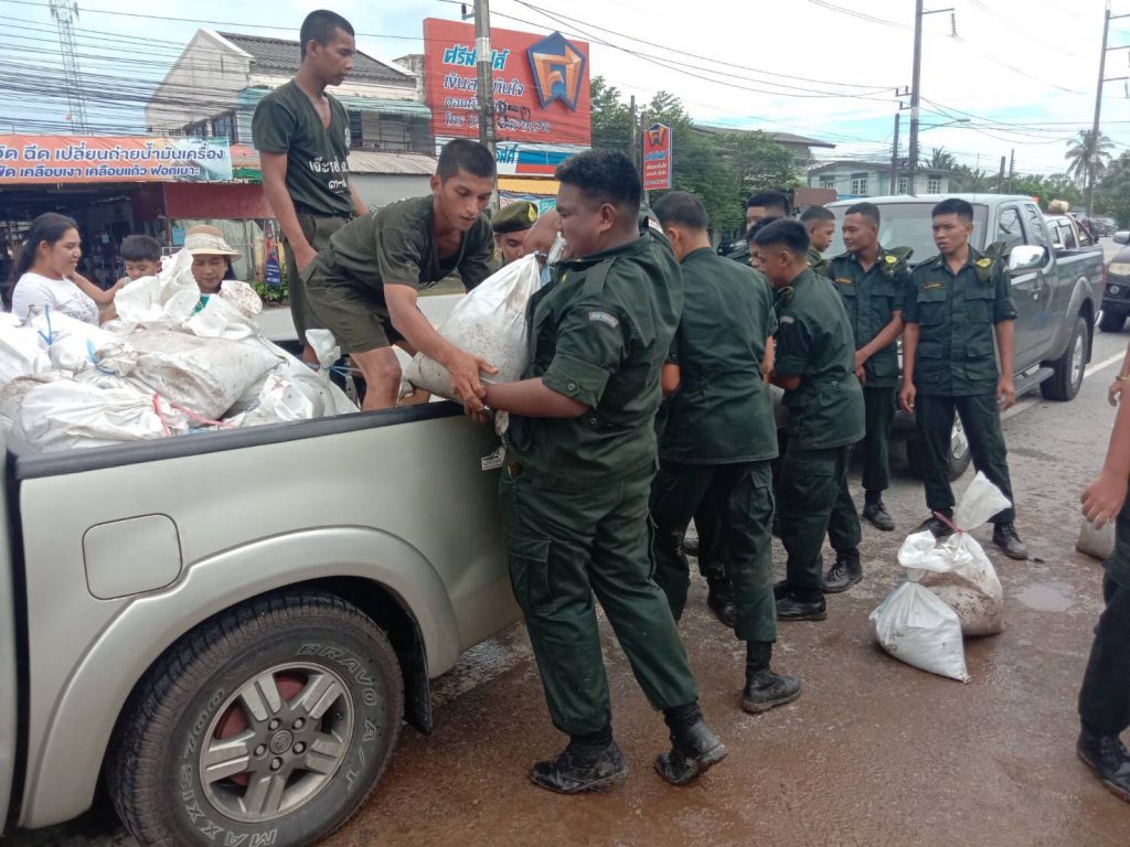 รองโฆษกกองทัพบก กล่าวว่า ส่วนที่จ.สงขลา มณฑลทหารบกที่ 42 เข้าช่วยขนย้ายคนและสิ่งของ พร้อมนำนักศึกษษวิชาทหารจิตอาสา ช่วยกันบรรจุกระสอบทราย เพื่อนำไปแจกจ่ายใหักับประชาชนที่ได้รับผลกระทบในเขต อ.เมือง จ. สุราษฎร์ธานี มวลน้ำหนุนเข้าท่วมในพื้นที่ ประกอบกับฝนตกหนักส่งผลให้เกิดน้ำท่วมขัง 30 – 120 เซนติเมตร มณฑลทหารบกที่45 จัดกำลังพล ยุทโธปกรณ์ ยานพาหนะ ช่วยขนย้ายสิ่งของขึ้นที่สูง และขนย้ายปศุสัตว์ ในพื้นที่ ต.ทุ่งเตา อ.บ้านนาสาร ขณะที่ ร.25 พัน.3 จัดกำลังพล ยานพาหนะ ช่วยขนย้ายสิ่งของขึ้นที่สูง เเละอพยพประชาชนที่ ต.ท่าเคย อ.ท่าฉาง ซึ่งมวลน้ำได้เพิ่มขึ้นสูงอย่างรวดเร็ว ฝนในพื้นที่ยังคงตกหนักและได้รับอิทธิพลน้ำหนุนมาจากพื้นที่ใกล้เคียง โดยคาดว่าภายใน 2 วันนี้ น้ำยังคงเพิ่มขึ้นอย่างต่อเนื่อง