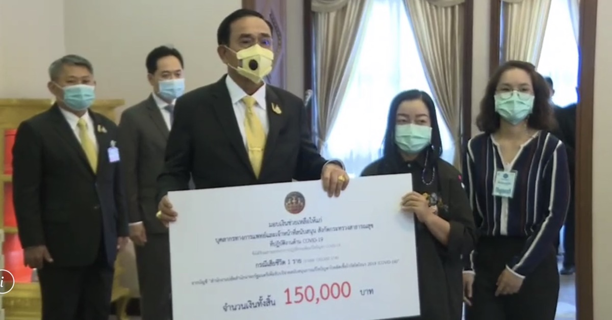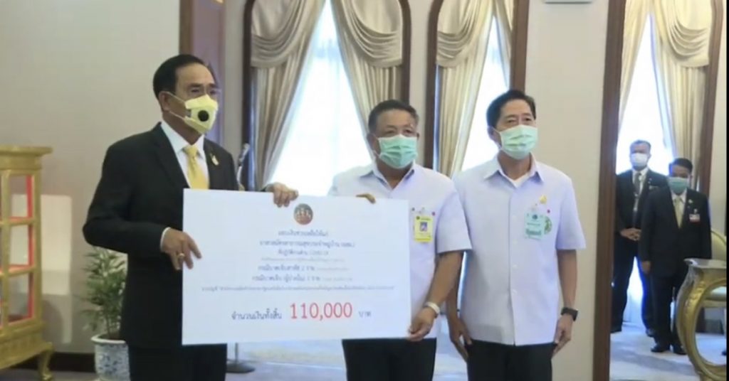 เมื่อเวลา 13.30 น. ห้องสีม่วง ตึกไทยคู่ฟ้า ทำเนียบรัฐบาล พล.อ.ประยุทธ์ จันทร์โอชา นายกรัฐมนตรี และรัฐมนตรีว่าการกระทรวงกลาโหม เป็นประธานในพิธีมอบเงินช่วยเหลือแก่เจ้าหน้าที่ ที่ได้รับผลกระทบจากการปฏิบัติหน้าที่ด้านการป้องกันและแก้ไขปัญหาการแพร่ระบาดของโรคติดเชื้อไวรัสโคโรนา 2019 จำนวน 13 ราย วงเงิน 6.7 แสนบาท ผ่านบัญชี สำนักงานปลัดสำนักนายกรัฐมนตรีเพื่อรับบริจาคสนับสนุนการแก้ไขปัญหาโรคติดเชื้อไวรัสโคโรนา 2019 (COVID-19)
