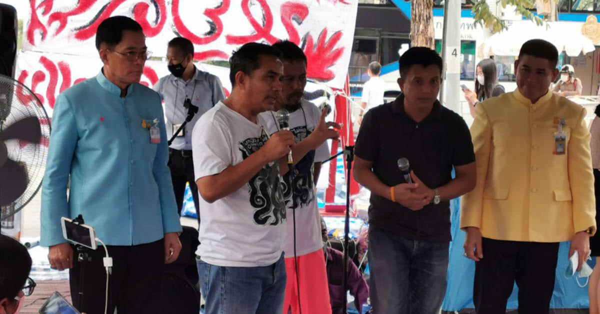 ขณะที่ ผู้ชุมนุมย้ำว่า หากทุกอย่างไม่ได้เป็นไปตามที่ตกลงกันไว้ ก็พร้อมจะกลับมาชุมนุมที่ทำเนียบรัฐบาลทันที .- สำนักข่าวไทย