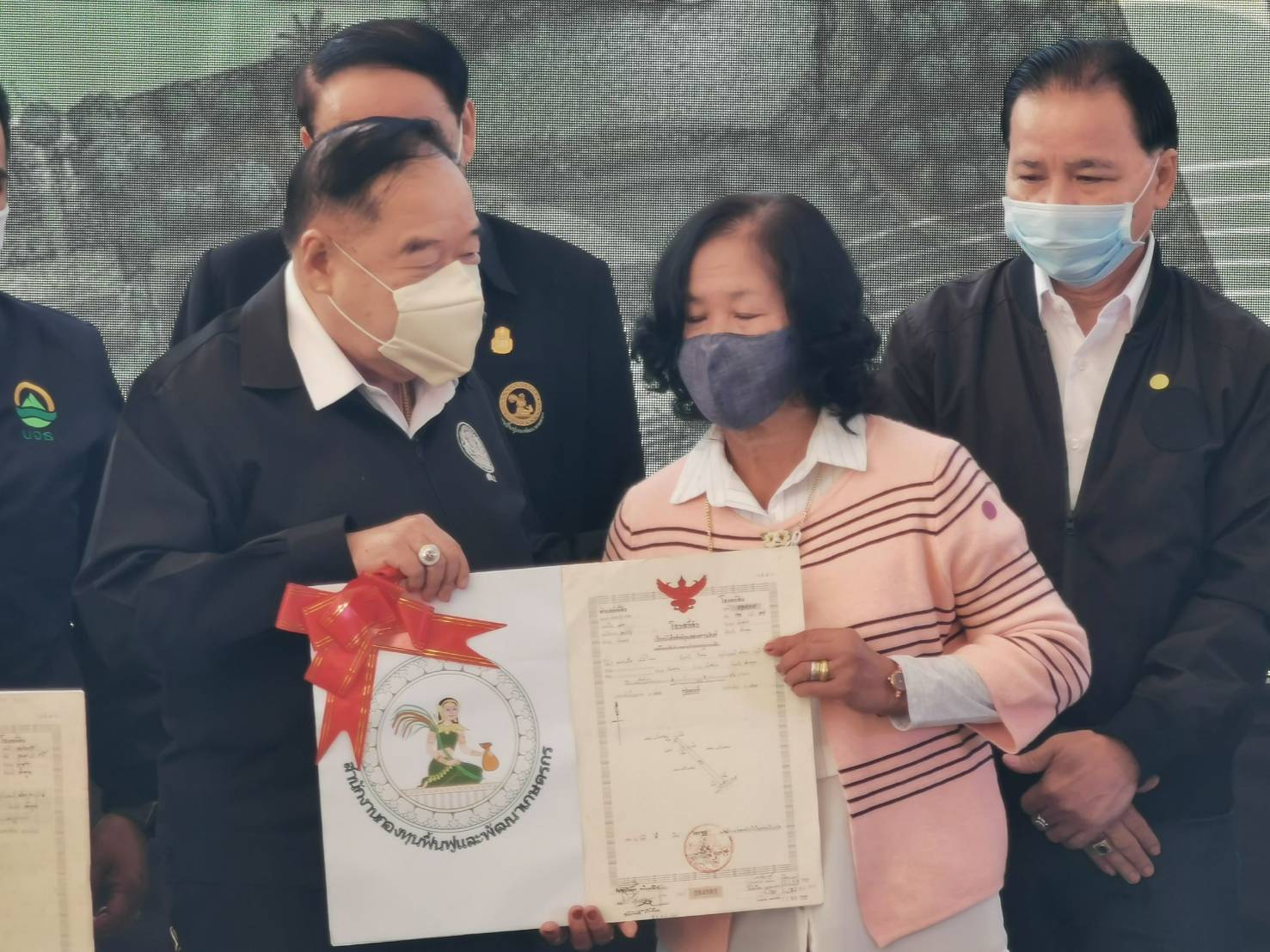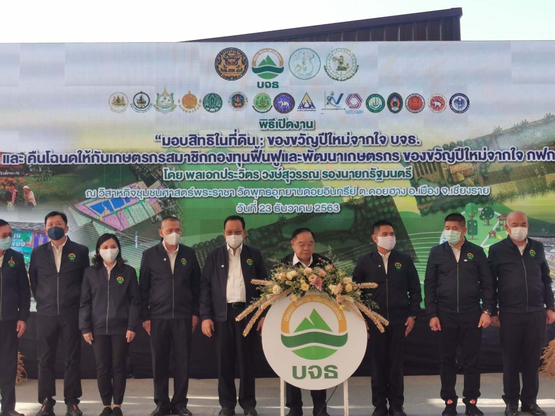 พล.อ.ประวิตร เป็นประธานเปิดพิธีมอบสิทธิในที่ดินของขวัญปีใหม่จากใจ บจธ. และคืนโฉนดให้กับเกษตรกรสมาชิกกองทุนฟื้นฟู และพัฒนาเกษตรกร และทำพิธี มอบป้ายสัญลักษณ์แทนสิทธิในที่ดินให้แก่ตัวแทนกลุ่มวิสาหกิจชุมชนฯ จำนวน 15 คน พร้อมมอบทุนหมุนเวียนการประกอบอาชีพให้แก่ วิสาหกิจชุมชนเชียงรายอุ่นไอรัก มอบคืนโฉนดที่ดินให้แก่ตัวแทนเกษตรกร จำนวน 11 คน จากการช่วยเหลือให้มีสิทธิในที่ดิน