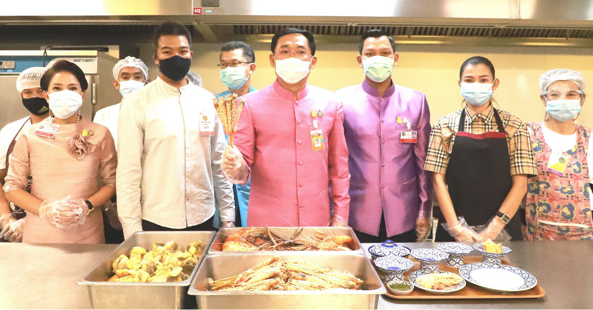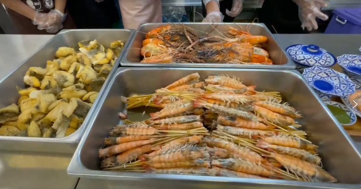 ทั้งหมด 7 เมนู ประกอบด้วย กุ้งเผา ต้มยำกุ้ง หมึกผัดกะปิ ปลากระพงทอดน้ำปลา กุ้งผัดกะเพรา ปลาหมึกไข่เค็ม และข้าวผัดปู .- สำนักข่าวไทย