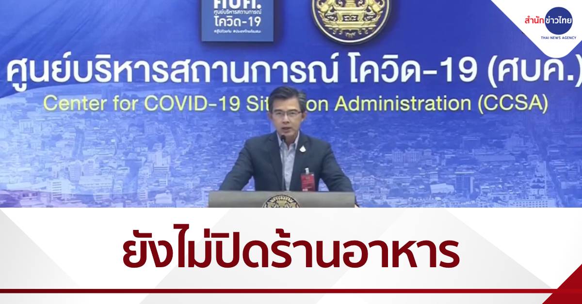 4.เรื่องร้านอาหาร ที่ประชุมได้ปรับแก้ร่างใหม่เพื่อให้มีความยืดหยุ่น โดยกำหนดว่า ในเขตพื้นที่ควบคุมสูงสุดนั้น การจำหน่ายอาหารและเครื่องดื่ม ให้จัดระเบียบการเข้าใช้บริการ จำนวนผู้นั่งบริโภคในร้าน การจัดสถานที่ตามแนวปฏิบัติตามมาตรการควบคุมโรค โดยอาจให้เป็นลักษณะของการนำกลับไปบริโภคที่อื่น และให้ศูนย์บริหารสถานการณ์โควิด-19 ของกระทรวงมหาดไทย และศูนย์ปฏิบัติการฉุกเฉินด้านการแพทย์และสาธารณสุข ร่วมกันพิจารณาและกำหนดรูปแบบ รวมถึงการกำกับการดำเนินการตามข้อปฏิบัติ และมาตรการต่างๆเพื่อให้เหมาะสม หรือ ให้เข้าใจง่ายคือ ให้คณะกรรมการโรคติดต่อจังหวัด เป็นผู้พิจารณาเพื่อบรรเทาความเดือดร้อนของประชาชนที่ประกอบกิจการร้านอาหาร เช่น หากมีพื้นที่ที่พบผู้ติดเชื้อสูง ก็อาจให้ร้านอาหารในพื้นที่นั้น เป็นลักษณะซื้อกลับไปบริโภคที่อื่นเท่านั้น โดยที่ยังห้ามการจำหน่ายและบริโภคเครื่องดื่มแอลกฮอล์ในร้านเช่นเดิม ขณะที่ห้างสรรพสินค้า ยังเปิดทำการตามเวลาปกติ อย่างไรก็ตาม สุดท้ายต้องขึ้นอยู่กับการพิจารณาของ ผอ.ศบค.อีกครั้ง จากนั้น แต่ละพื้นที่จะออกประกาศเฉพาะในแต่ละพื้นที่