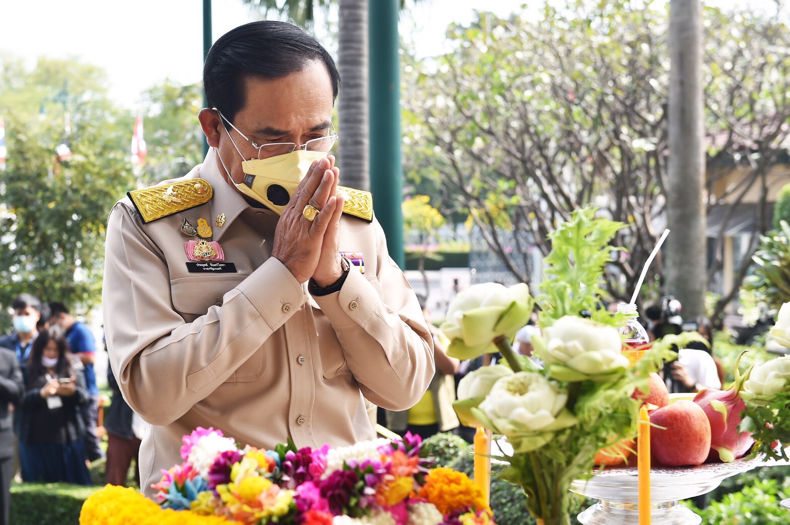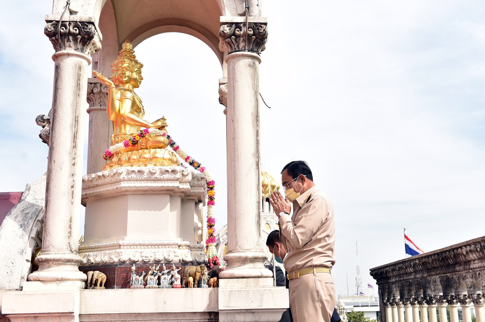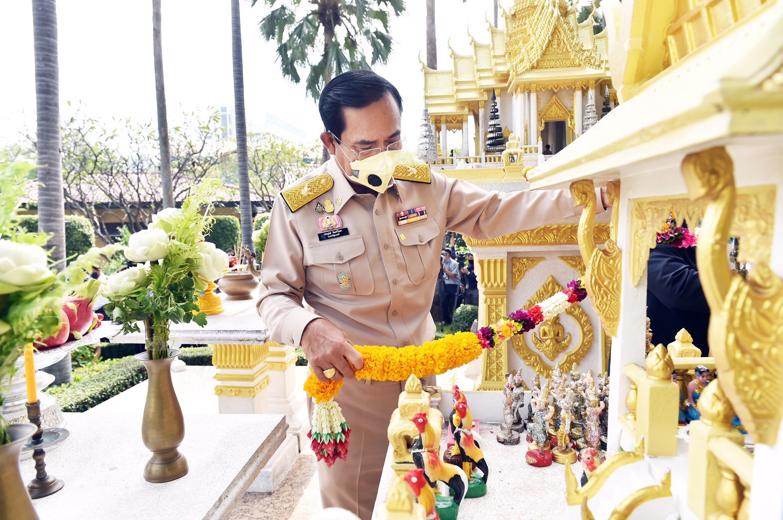 นายกรัฐมนตรี กล่าวว่า เนื่องในโอกาสทำงานวันแรกที่ทำเนียบรัฐบาล จึงมาไหว้สิ่งศักดิ์สิทธิ์ เพื่อความเป็นสิริมงคล แต่ในช่วงวันหยุดเทศกาลปีใหม่ ได้ทำงานอย่างต่อเนื่องและติดตามสถานการณ์โควิด -19 ทุกวัน รวมถึงหารือศูนย์บริหารสถานการณ์การแพร่ระบาดของโรคติดเชื้อไวรัสโคโรนา 2019 (โควิด-19 : ศบค.) เพื่อออกมาตรการต่าง ๆ รับมือกับโควิด อย่างไรก็ตาม การแก้ปัญหาไม่ใช่หน้าที่ของรัฐบาลฝ่ายเดียว แต่ประชาชนทุกคนต้องร่วมมือกัน เพื่อให้ทุกอย่างประสบความสำเร็จ เพราะโควิดเป็นเรื่องเกี่ยวข้องกับคนจำนวนมาก หากต่างคนต่างพูด แต่ไม่ทำ การแก้ปัญหาก็ทำไม่ได้