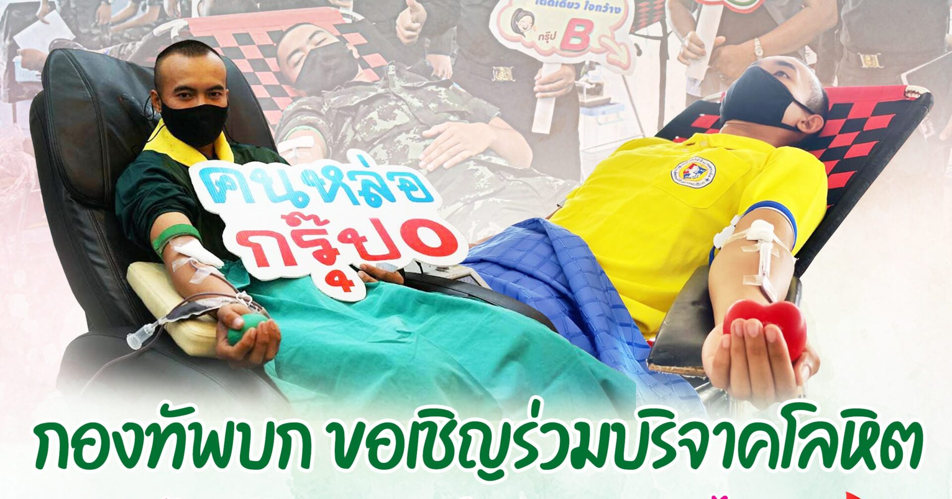 กองทัพบกขอเชิญชวนประชาชน กำลังพลและครอบครัว ร่วมบริจาคโลหิต ซึ่งในหลายพื้นที่ขาดแคลนโลหิต หลังจากเกิดการแพร่ระบาดของโควิด -19 ระลอกใหม่ ทำให้ผู้บริจาคลดน้อยลง ส่งผลกระทบให้ภาวะโลหิตสำรองไม่เพียงพอ ซึ่งจะมีผลกระทบต่อผู้ป่วยที่จำเป็นต้องใช้โลหิตในการรักษา