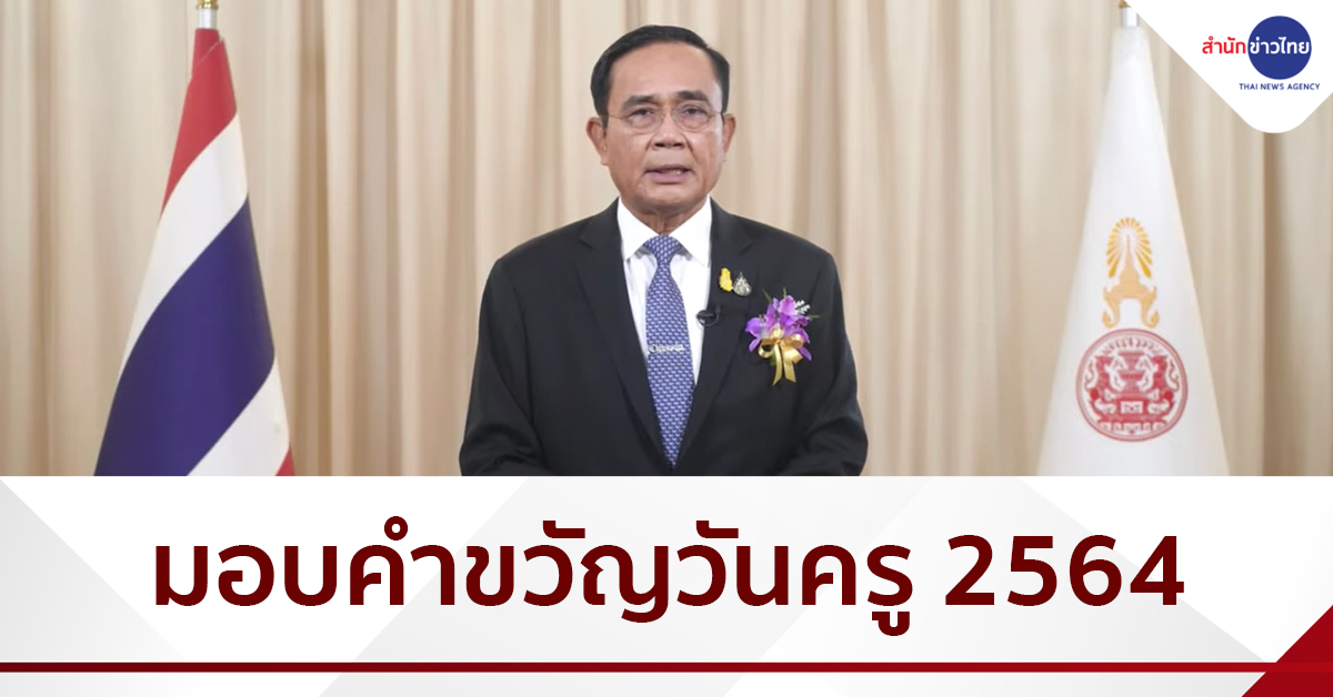 กรุงเทพฯ 16 ม.ค.- นายกรัฐมนตรี มอบคำขวัญวันครู 2564 “ครูวิถีใหม่ ใส่ใจดิจิทัล สร้างสรรค์คุณธรรมประจำชาติ” แนะครูยุคใหม่ต้องผลักดันเด็กเข้าถึงศาสตร์สาขาต่างๆ พร้อมเติบโตเป็นคนดี ย้ำรัฐบาลมีนโยบายพัฒนาครูให้มีมาตรฐานวิชาชีพระดับสากล