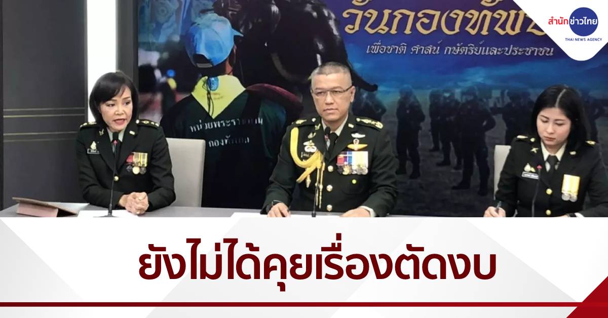 กองบัญชาการกองทัพบก 18 ม.ค.-โฆษกทบ.ระบุการตัดงบกองทัพเป็นเรื่องที่กองทัพ-รัฐบาลจะพิจารณาร่วมกัน ขณะนี้ยังไม่ได้คุยกัน หลังฝ่ายการเมืองจี้ตัดงบ 65 ช่วยโควิด ปัดตอบความคืบหน้าปฏิรูปกองทัพ โยนเป็นเรื่องกรรมการ