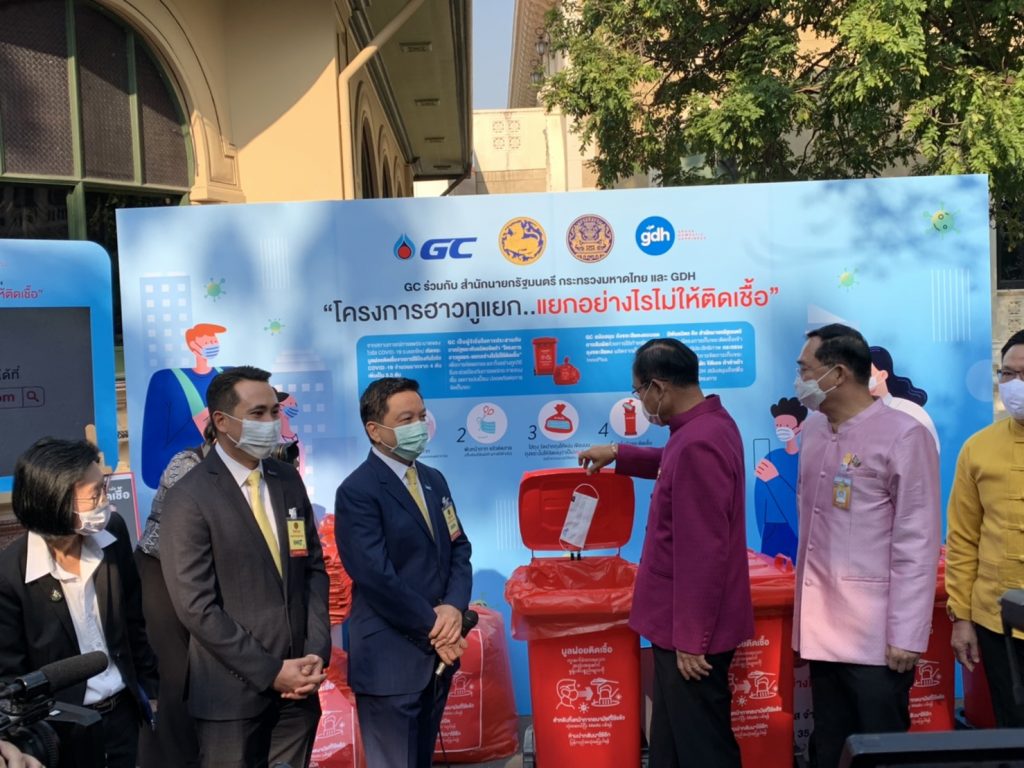 จากนั้น นายอนุชา นาคาศัย รัฐมนตรีประจำสำนักนายกรัฐมนตรี และคณะผู้บริหาร ประชาสัมพันธ์โครงการ “ฮาวทูแยก – แยกอย่างไรไม่ให้ติดเชื้อ” เพื่อรณรงค์ให้ประชาชนทั้งขยะติดเชื้อ เช่นหน้ากากอนามัย กระดาษชำระ เสื้อกาวน์จากเม็ดพลาสติก ชุดอุปกรณ์ป้องกันบุคลากรทางการแพทย์ และ ถุงมือ อย่างถูกต้อง และจะมีระบบนำไปกำจัดอย่างถูกวิธี ซึ่งโครงการนี้จะนำร่องใน 3 จังหวัดในพื้นที่เสี่ยงคือสมุทรสาคร ชลบุรีและระยอง