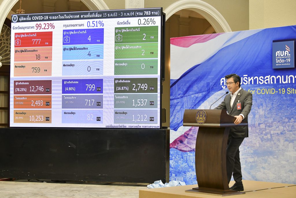 ทำเนียบ 3 ก.พ.- ศบค. เผยพบผู้ติดเชื้อรายใหม่ 795 ราย มหาสารครามติดจากโต๊ะแชร์ 21 ราย รอผลตรวจอีก 1,672 ราย ย้ำยังวางใจไม่ได้