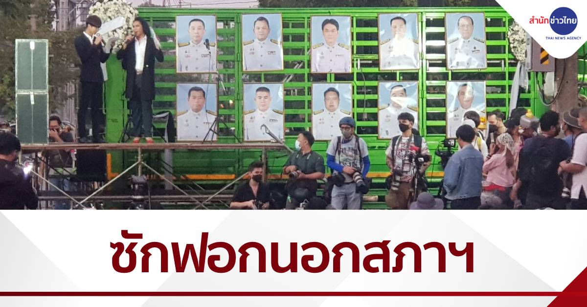 เวลา 17.00 น. บรรยากาศการชุมนุมเริ่มคึกคัก มีมวลชนนักเรียน นักศึกษา เยาวชน ทยอยเข้าร่วมชุมนุมมากขึ้น โดยบางคนได้นำหม้อ กระทะ กะละมังติดตัวมาเคาะขับไล่พล.อ.ประยุทธ์ จันทร์โอชา ด้วย ขณะที่เวทีปราศรัยได้มีการนำรูปนายกรัฐมนตรีและรัฐมนตรีที่ถูกอภิปรายไม่ไว้วางใจมาติดประจานพร้อมกับพวงรีดสาบแช่ง โดยมีเหล่าแกนนำในกลุ่มราษฎร และกลุ่มแนวร่วม สลับกันขึ้นเวทีอภิปรายไม่ไว้วางใจ พล.อ.ประยุทธ์ และรัฐมนตรีที่เกี่ยวข้องนอกสภา ซึ่งเนื้อหาส่วนใหญ่เป็นเนื้อหาที่สอดคล้องกับที่มีการอภิปรายในสภา เช่น เรื่องการปฏิบัติหน้าที่ของนายกรัฐมนตรี ปัญหาความเหลื่อมล้ำต่างๆ รวมถึงการปฏิบัติหน้าที่ของตำรวจด้วย ทั้งนี้ กิจกรรมการชุมนุมได้ไปจนถึงเวลา 23.00 น. จึงยุติการชุมนุม