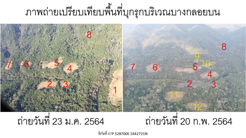 โดยนายจงคล้าย วรพงศธร ผู้ตรวจราชการกระทรวงทรัพยากรธรรมชาติและสิ่งแวดล้อม ได้ลงพื้นที่พร้อมกับนายประยงค์ ดอกลำไย ตัวแทนขบวนการประชาชนเพื่อสังคมที่เป็นธรรม หรือพีมูฟ เข้าไปดูในพื้นที่จริง ด้วยกันโดยขึ้นเฮลิคอปเตอร์และพบว่ามีชาวบ้านเข้าบุกรุกป่าด้วยการแผ้วถาง และเผาป่า กว่า 100 ไร่ และตน ยังได้รับรายงานเมื่อช่วงบ่ายของวันเดียวกันนี้เพิ่มเติมด้วยว่า พบว่า มีการบุกรุกป่าเพิ่มเติมอยู่อีกและเห็นที่ชัดที่สุดคือ ตามซอกเขา หลายจุด จุดละประมาณ 15 ไร่เศษ แล้วนี่หรือคือการถอยคนละก้าวตามที่ได้ลงนามในบันทึกความเข้าใจร่วมกัน มีแต่จะบุกรุกเพิ่มเติม ซึ่งคณะทำงานได้รายงานให้รัฐมนตรีว่าการกระทรวงทส.ทราบแล้ว