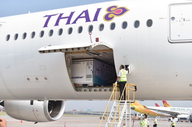 นายกรัฐมนตรี เข้าไปรับมอบวัคซีนจากเครื่องบิน จากนั้นจะบรรจุวัคซีนออกจากเครื่อง นำขึ้นรถขนส่ง ไปจัดเก็บที่คลังสำรองวัคซีนโควิด -19 ขององค์การเภสัชกรรม โดยรถขนส่งวัคซีน