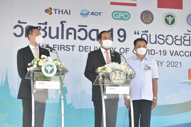 ท่าอากาศยานสุวรรณภูมิ 24 ก.พ.-นายกฯ รับมอบวัคซีนโควิด-19 ของซิโนแวค ลอตแรก 2 แสนโดส ย้ำเป็นวัคซีนของคนไทยทั้งประเทศ วอนอย่านำเรื่องวัคซีนไปสร้างความขัดแย้ง เชื่อมั่นทยอยนำเข้าตามแผนที่กำหนดไว้ ขณะที่อุปทูตจีน บอกสร้างรอยยิ้มให้คืนสู่ชาวไทย