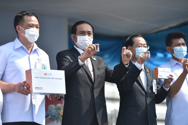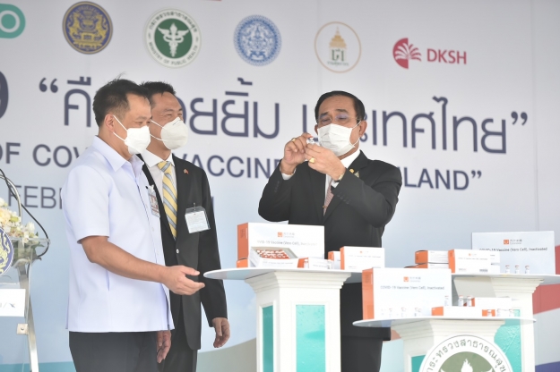 พลเอกประยุทธ์ จันทร์โอชา นายกรัฐมนตรีและรัฐมนตรีว่าการกระทรวงกลาโหม เป็นประธานรับวัคซีนป้องกันโควิด – 19 จำนวน 2 แสนโดส ของบริษัท ซิโนแวค ไบโอเทค จำกัด จากสาธารณรัฐประชาชนจีน ภายใต้ชื่องาน “วัคซีนโควิด – 19 คืนรอยยิ้ม ประเทศไทย” ที่ขนส่งโดยเที่ยวบินขนส่งสินค้า TG 675 เส้นทางปักกิ่ง – กรุงเทพมหานคร ณ เขตปลอดอากรและคลังสินค้า ท่าอากาศยานสุวรรณภูมิ โดยมีนายอนุทิน ชาญวีรกูล รองนายกรัฐมนตรีและรัฐมนตรีว่าการกระทรวงสาธารณสุข และ Mr.Yang Xin อุปทูตรักษาการแทนเอกอัครราชทูตจีนประจำประเทศไทย นายอาคม เติมพิทยาไพสิฐ รัฐมนตรีว่าการกระทรวงการคลัง นายศักดิ์สยาม ชิดชอบ รัฐมนตรีว่าการกระทรวงคมนาคม นายสาธิต ปิตุเตชะ รัฐมนตรีช่วยว่าการกระทรวงสาธารณสุข และหน่วยงานที่เกี่ยวข้อง เข้าร่วม