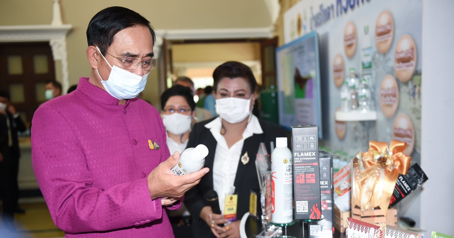 นายกรัฐมนตรี ชื่นชมผลิตภัณฑ์จากนวัตกรรมโดยคนไทยรุ่นใหม่ เช่น การพัฒนาน้ำพริกส็อกน้ำพริกถั่วเน่า น้ำพริกหนุ่ม ที่สามารถพัฒนาเป็นสินค้าแช่แข็งหรือกึ่งปรุงสุก ขยายโอกาสทางการตลาดทั้งในและต่างประเทศ ขยายตลาดสู่ต่างประเทศ เพื่อเพิ่มมูลค่าให้กับอาหารไทย หรือสเปรย์ดับเพลิง แบรนด์ FLAMEX หากพัฒนาให้มีความหลากหลาย สามารถนำไปใช้ในสำนักงานหน่วยงานราชการได้ ยืนยันว่ารัฐบาลสนับสนุนสตาร์ทอัพตามแนวทางเศรษฐกิจ BCG เพื่อขับเคลื่อนประเทศด้วยนวัตกรรมที่เป็นของคนไทย พร้อมฝากรัฐมนตรีว่าการกระทรวงการอุดมศึกษา วิทยาศาสตร์ วิจัยและนวัตกรรม สนับสนุนโครงการนวัตกรรมในทุกมหาวิทยาลัย เพราะนิสิต นักศึกษาคือกำลังสำคัญในการพัฒนาประเทศไทยไปสู่อนาคต