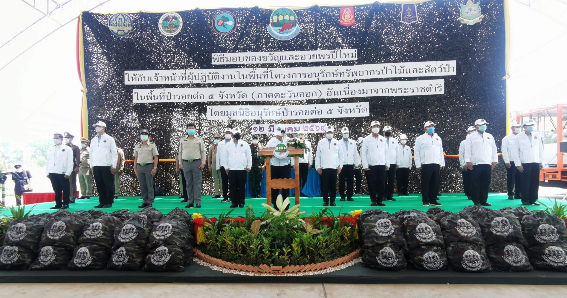 พล.อ.ประวิตร วงษ์สุวรรณ รองนายกรัฐมนตรี ฝ่ายความมั่นคง ในฐานะประธานกรรมการมูลนิธิอนุรักษ์ป่ารอยต่อ 5 จังหวัด เป็นประธานพิธีตรวจเยี่ยม ให้กำลังใจ ปลูกต้นไม้ และมอบเงินสินไหมทดแทน เงินสงเคราะห์ช่วยเหลือแก่ครอบครัวเจ้าหน้าที่ผู้ปฏิบัติงานในพื้นที่โครงการอนุรักษ์ทรัพยากรป่าไม้และสัตว์ป่ารอยต่อ 5 จังหวัด(ภาคตะวันออก) อันเนื่องมาจากพระราชดำริ โดยมูลนิธิอนุรักษ์ป่ารอยต่อ 5 จังหวัด เพื่ออนุรักษ์ผืนป่า โดยมีอาณาเขตครอบคลุมพื้นที่ต่างๆได้แก่ เขตรักษาพันธุ์สัตว์ป่าเขาอ่างฤาไน เขตรักษาพันธุ์สัตว์ป่าเขาสอยดาว ,อุทยานแห่งชาติเขาคิชฌกูฏ ,อุทยานแห่งชาติเขาชะเมา และอุทยานแห่งชาติเขาสิบห้าชั้น โดยพื้นที่ป่ารอยต่อ 5 จว.ประกอบด้วยพื้นที่ป่า จ.สระแก้ว ,จ.จันทบุรี ,จ.ระยอง ,จ.ชลบุรี และจ.ฉะเชิงเทรา มีเนื้อที่รวมประมาณ 1.3 ล้านไร่ มีเจ้าหน้าผู้ปฎิบัติงานหลายหน่วยงาน อาทิ เจ้าหน้าที่ป่าไม้, เจ้าหน้าที่ทหารพราน และเจ้าหน้าที่กรมอุทยาน โดยวันนี้ได้มอบเงินสินไหมทดแทน จำนวน 2 ราย มอบเงินสงเคราะห์ผู้บาดเจ็บผู้เสียชีวิต จำนวน 11 ราย มอบเกียรติบัตรให้กับนักเรียนที่ร่วมโครงการ ยายเกตุ คชาไทย จากพงไพร สู่ใจประชา ในการประกวดวาดภาพ และระบายสีระดับประถมศึกษาปีที่ 1 ถึงมัธยมศึกษาปีที่ 3 จำนวน 9 คน มอบของขวัญและอวยพรปีใหม่ให้ผู้แทนหน่วย 17 หน่วย