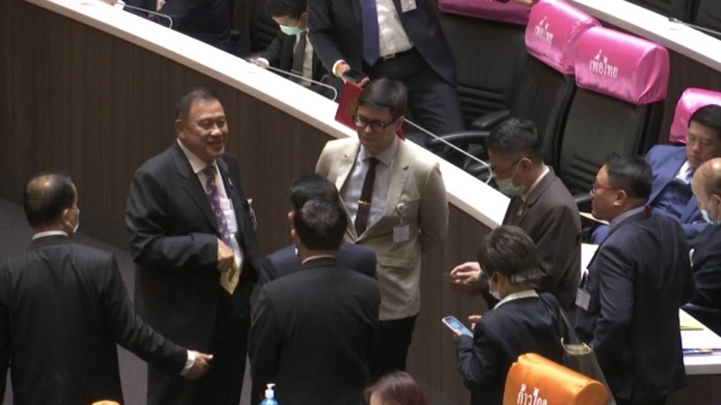 กทม. 17 มี.ค.-สภาวุ่น! สัญญาณไฟไหม้ดัง ทำ ส.ส.แตกตื่น ด้าน “ชวน” แซว! พูดกันจนน้ำไหลไฟดับ ก่อนสั่งพักการประชุม 20 นาที หลังหาข้อยุติลงมติไม่ลงตัว